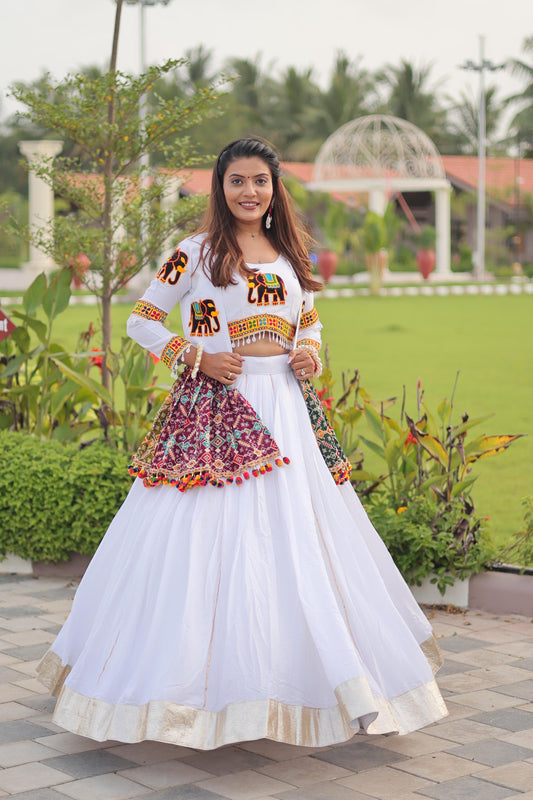 Step into festive elegance with this Pure Cotton Lehenga Set featuring a heavy Gamthi work koti with kodi...