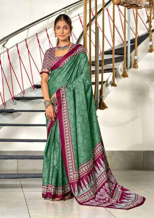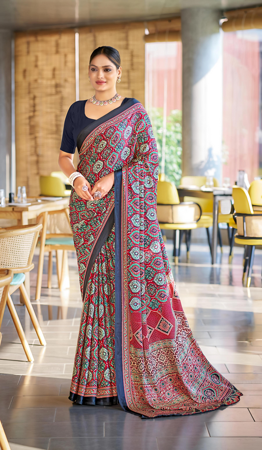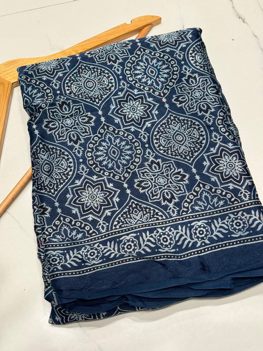 New Ajrakh Modal Silk Ajrakh Fancy Pallu Saree Available in modal silk ajrakh natural mill...