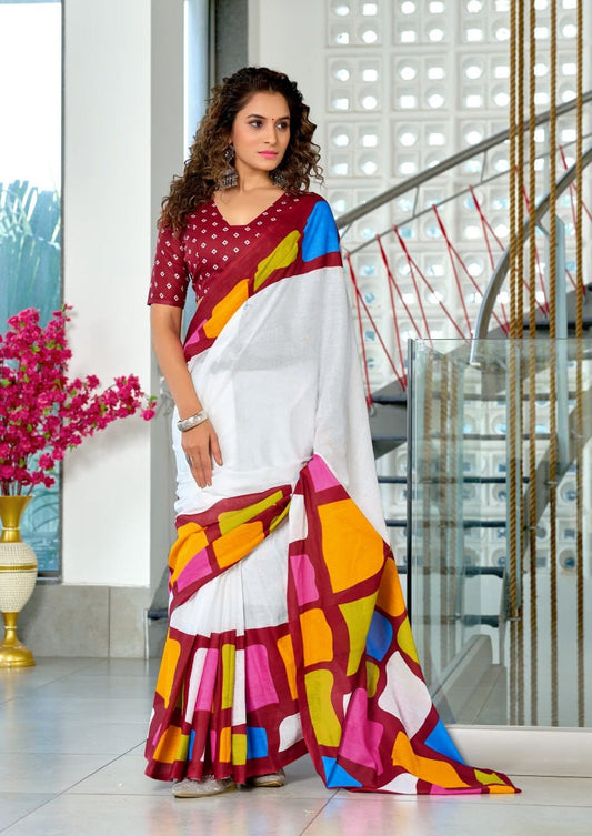 New Designer MulCotton Saree Length: 5.5 mtr printed with zari border; Width: 0.80 mtr Printed same...