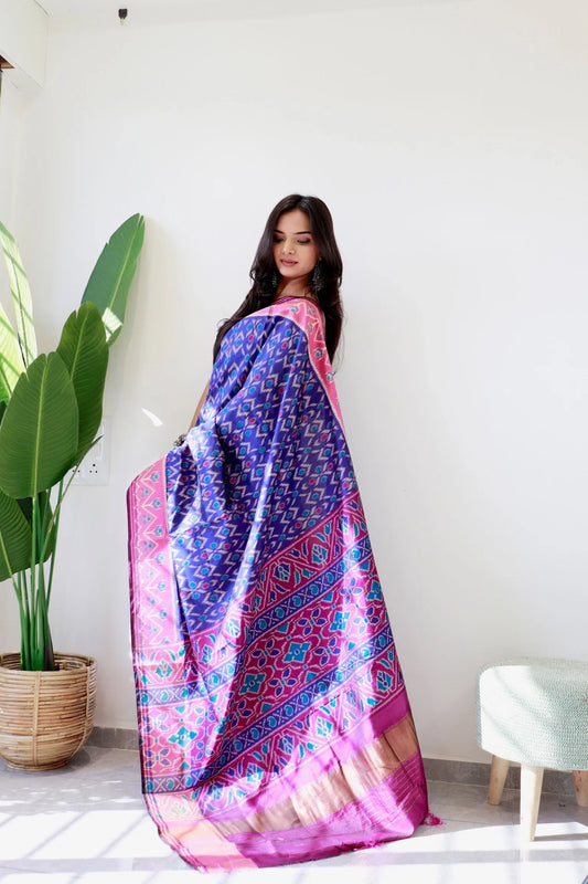 PATOLA SAREElite weight art silk border pallu weaving along with patola printMaterial: Art SilkSaree Designs:...