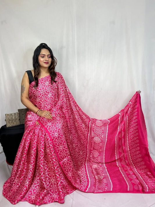 New Ajrakh Modal Silk Ajrakh Fancy Pallu Saree Available in modal silk ajrakh natural mill...