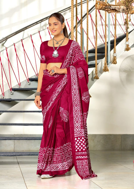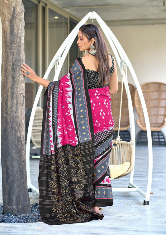 New Designer Soft Cotton Saree Length: 6.30 MTR PURE COTTON FANCY BAGRU BLOCK PRINT SAREES...