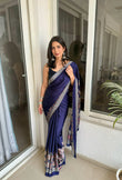 Available in modal silk ajrakh natural mill print saree with ajrakh and fancy ajrakh pallu saree.*Same fabric Bandhni blouse.