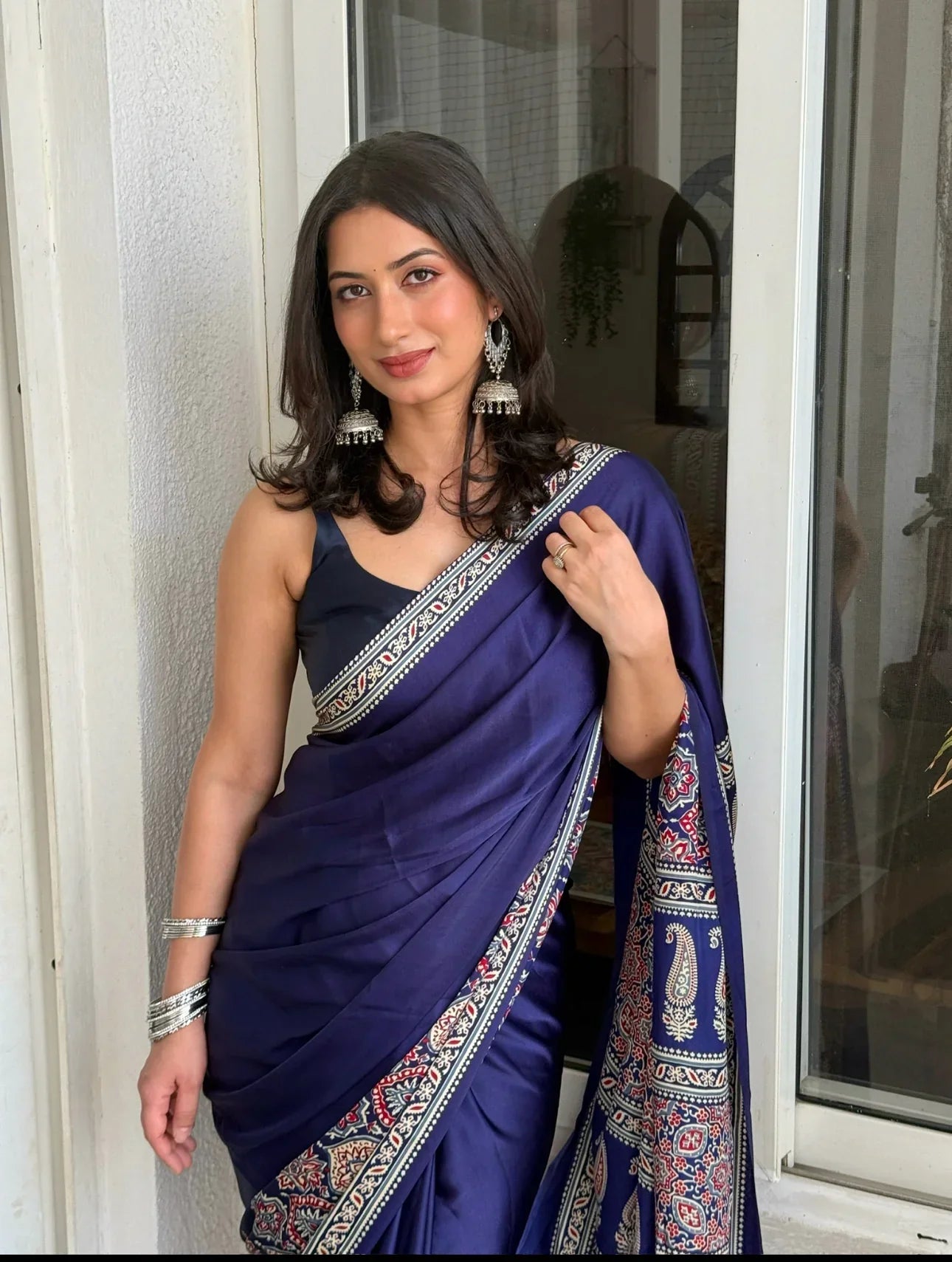 New ajrakh modal Silk Ajrakh Fancy pallu saree