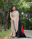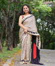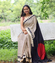 Saree work : Digital Print Border with Ajrakh Rich Pallu With Contrast Blouse