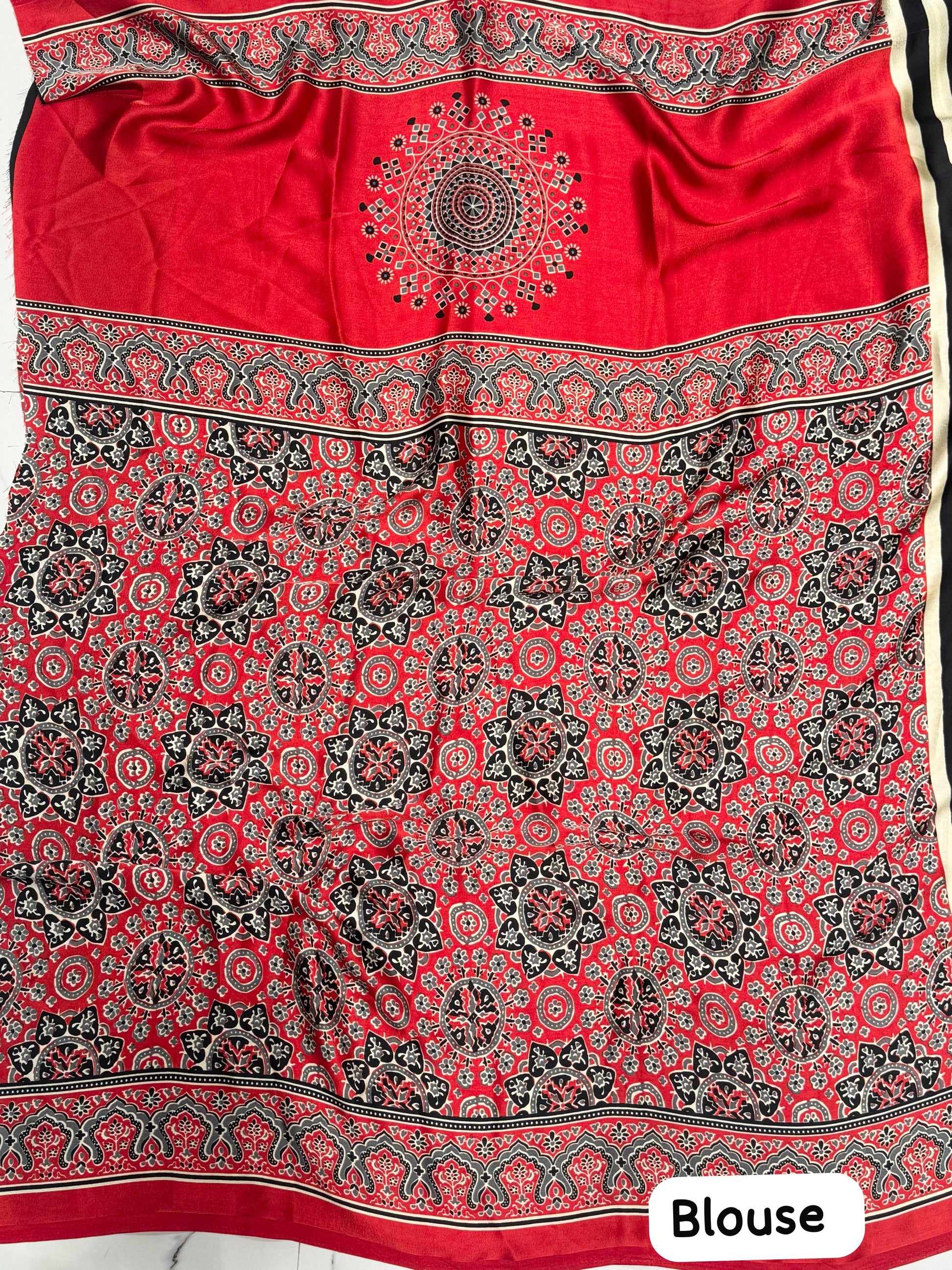 New ajrakh modal Silk Ajrakh Fancy pallu saree
