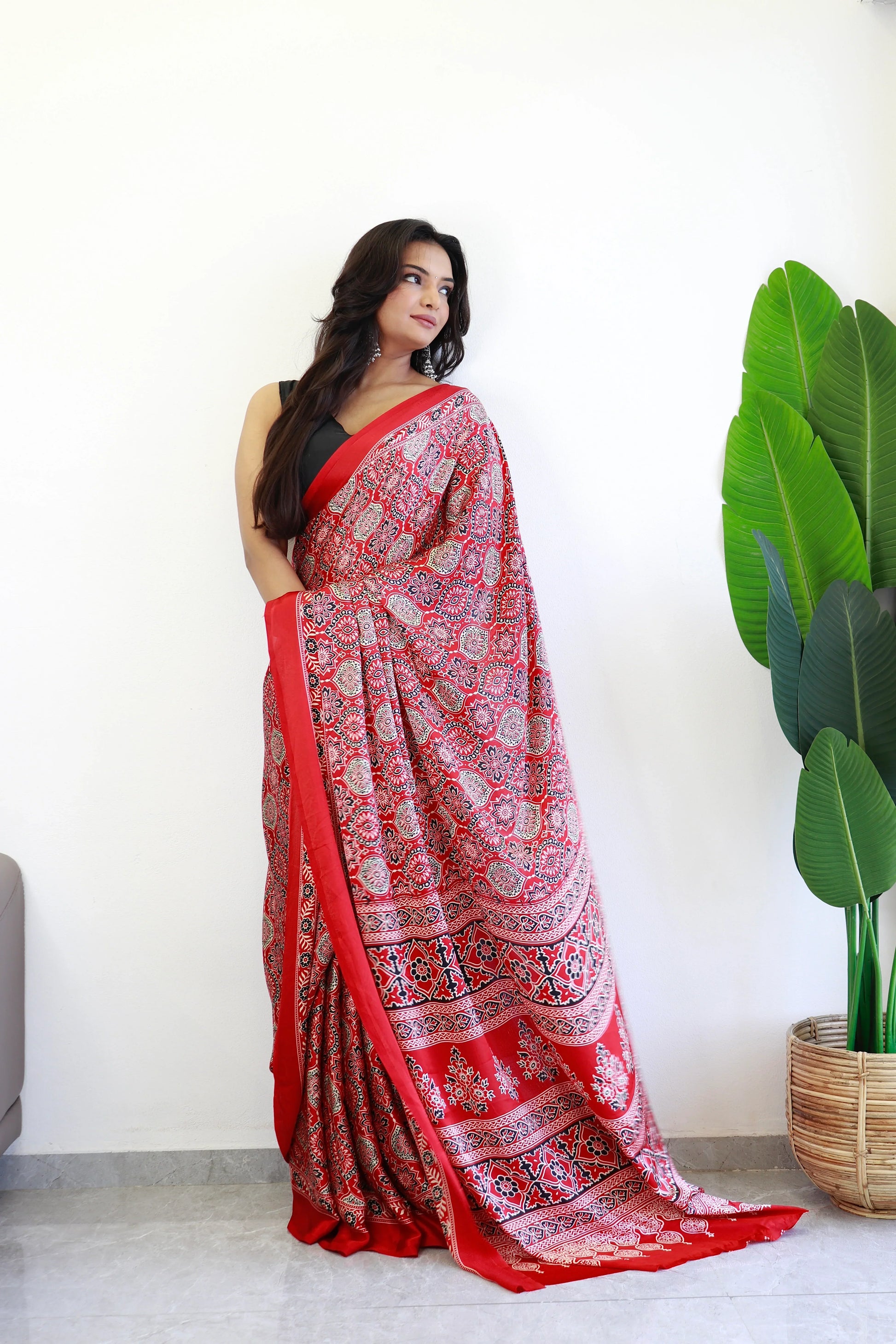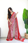 Redish Maroon Ajrakh Printed Soft Modal Silk Natural Print Saree