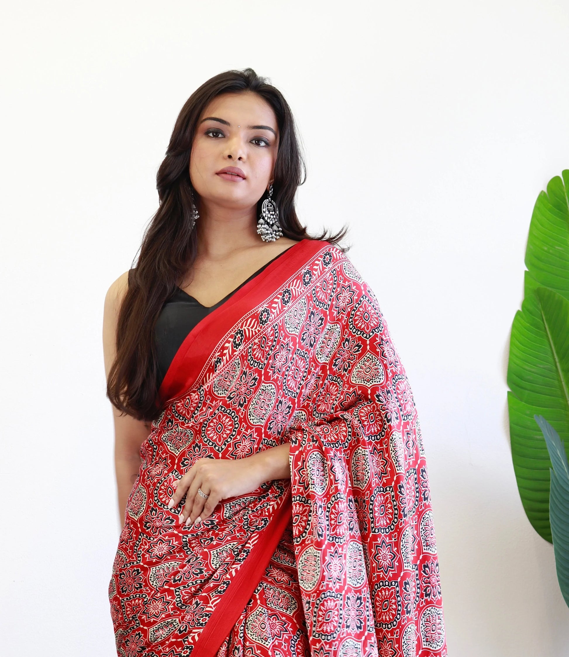 Available in modal silk ajrakh natural mill print saree with ajrakh and fancy ajrakh pallu saree.*Same fabric Bandhni blouse.