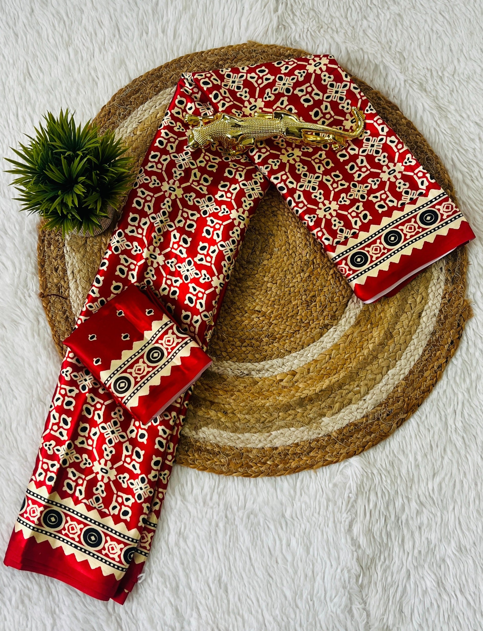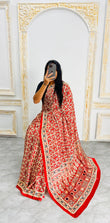 Red Ajrakh Primum Modal Silk Saree With Blouse
