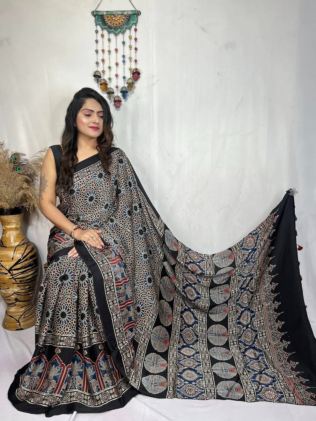 Ajrakh Primum Modal Silk Saree With Blouse