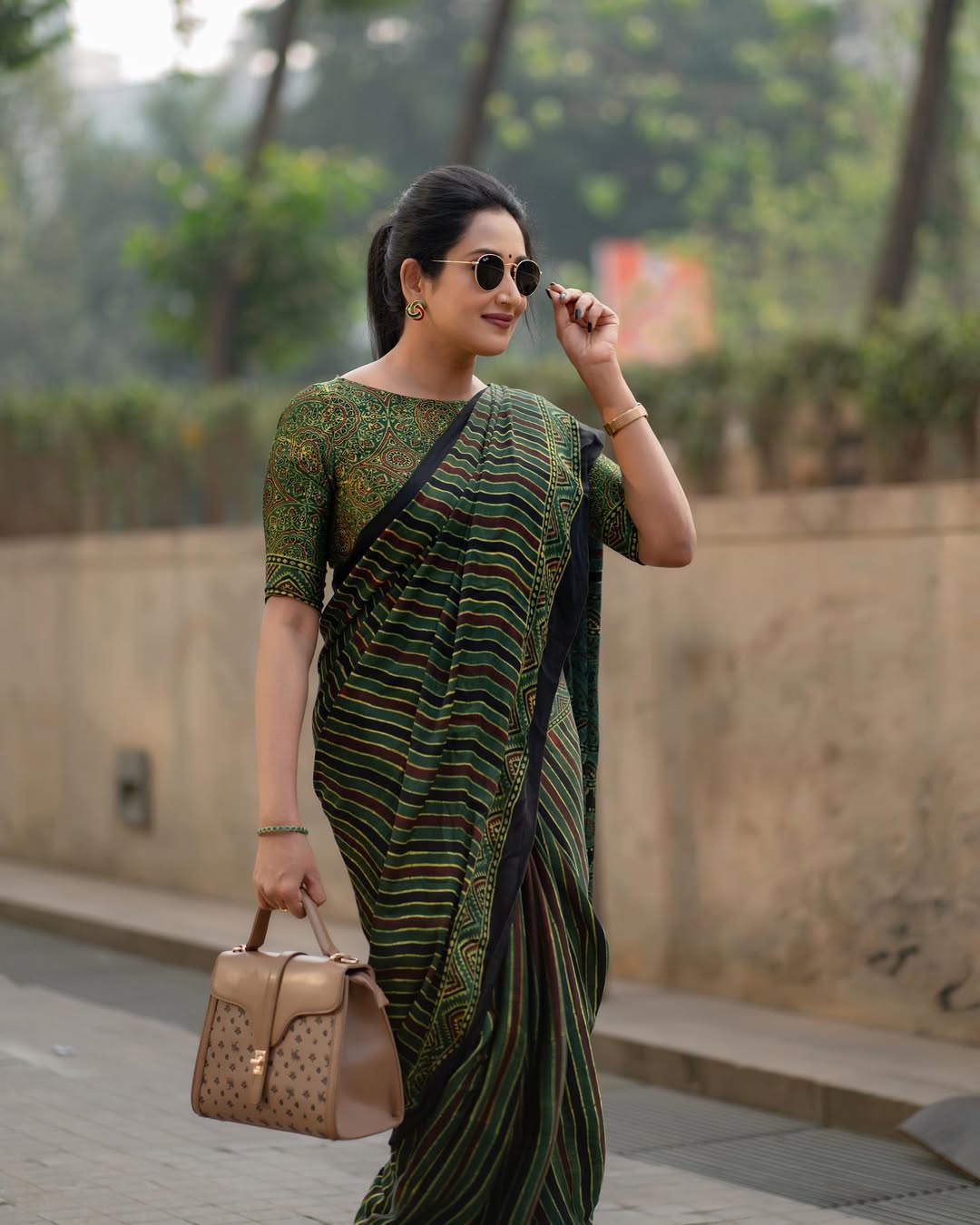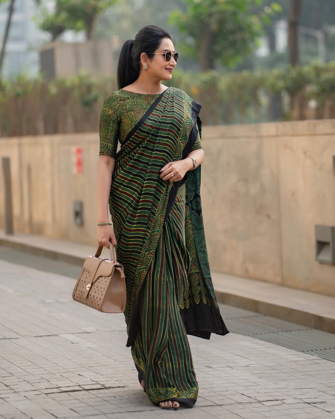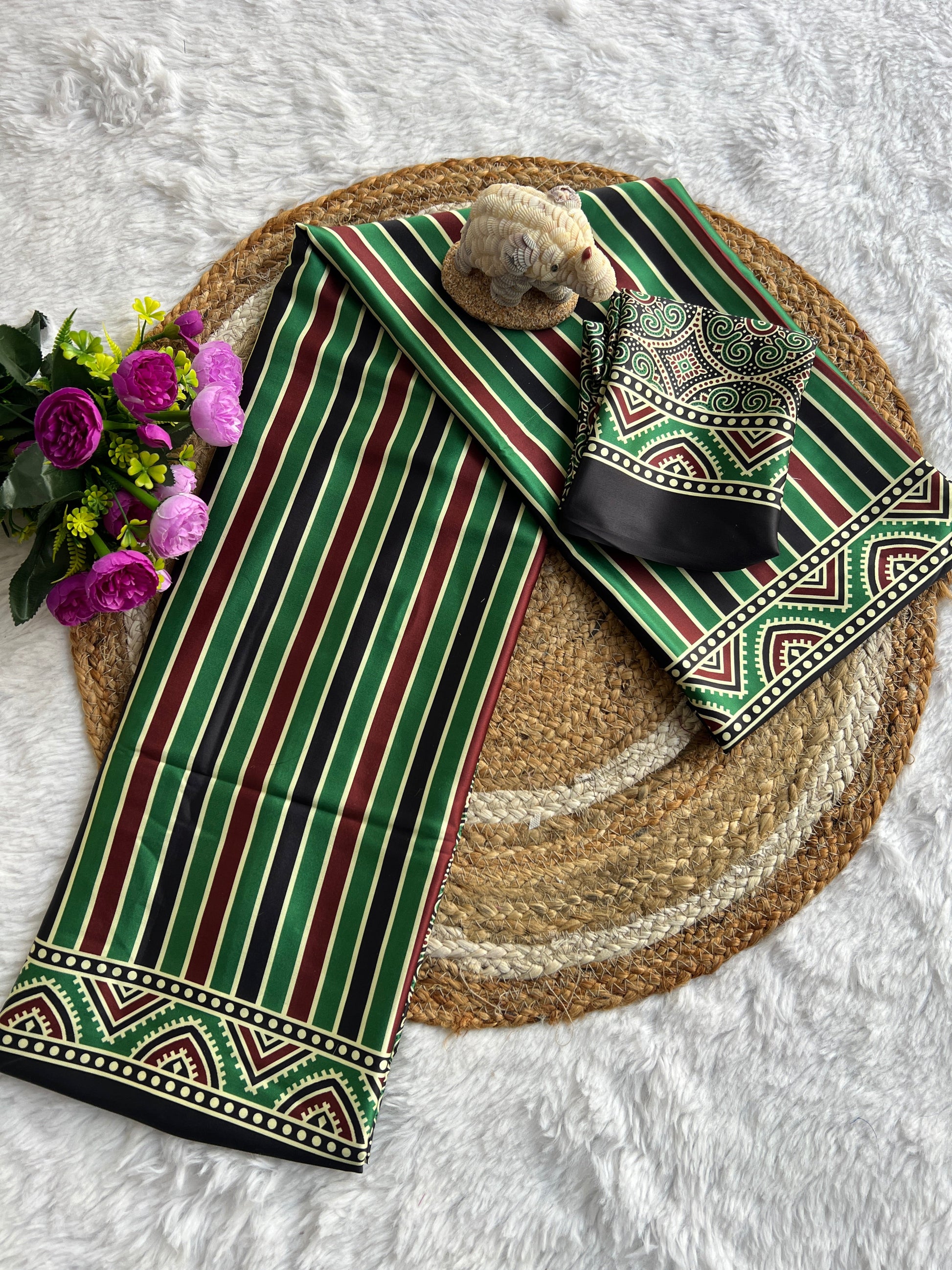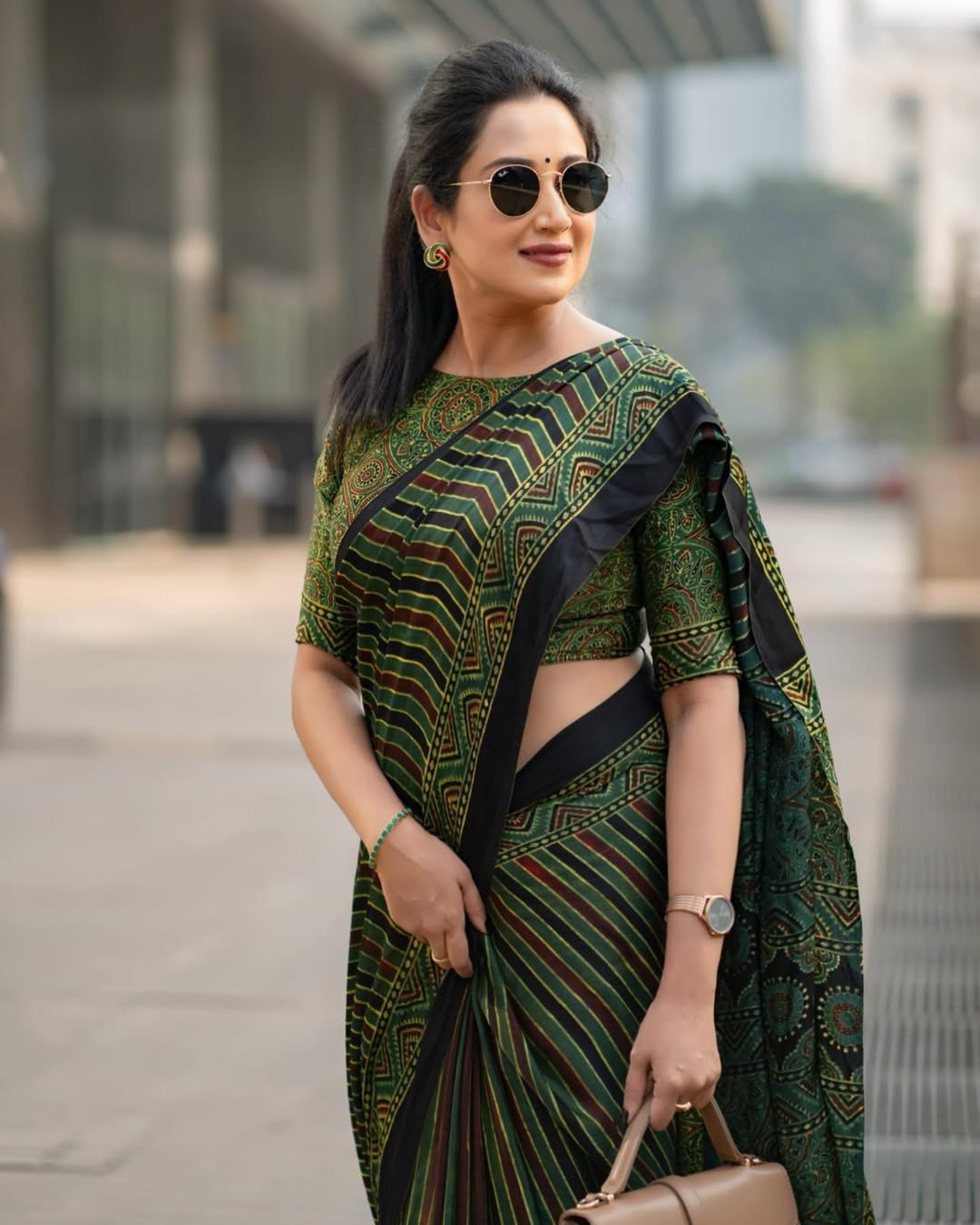 Green Line Ajrakh Primum Modal Silk Saree With Blouse