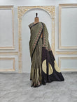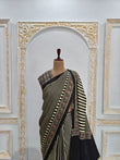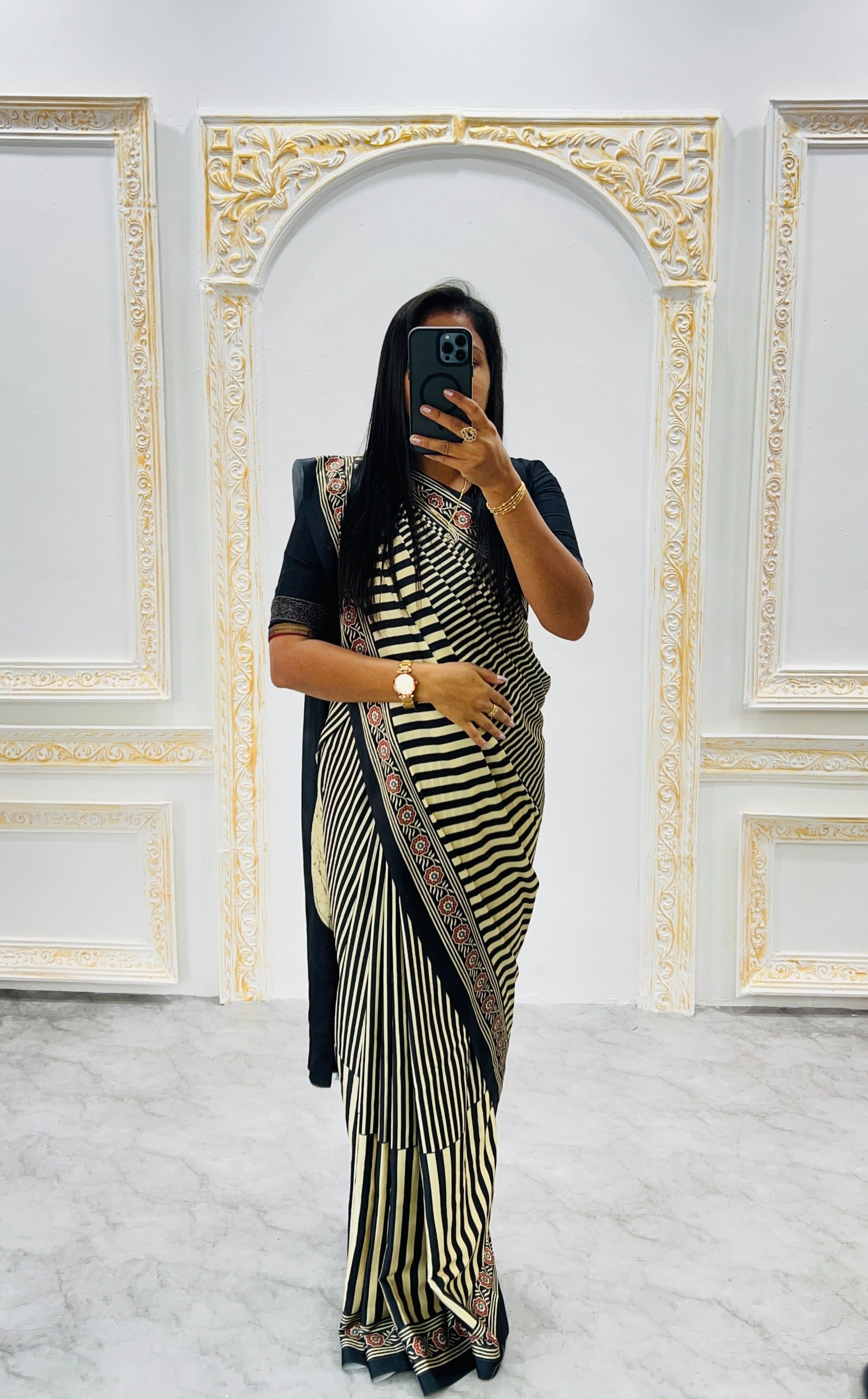 Saree work : Digital Print Border with Ajrakh Rich Pallu With Contrast Blouse