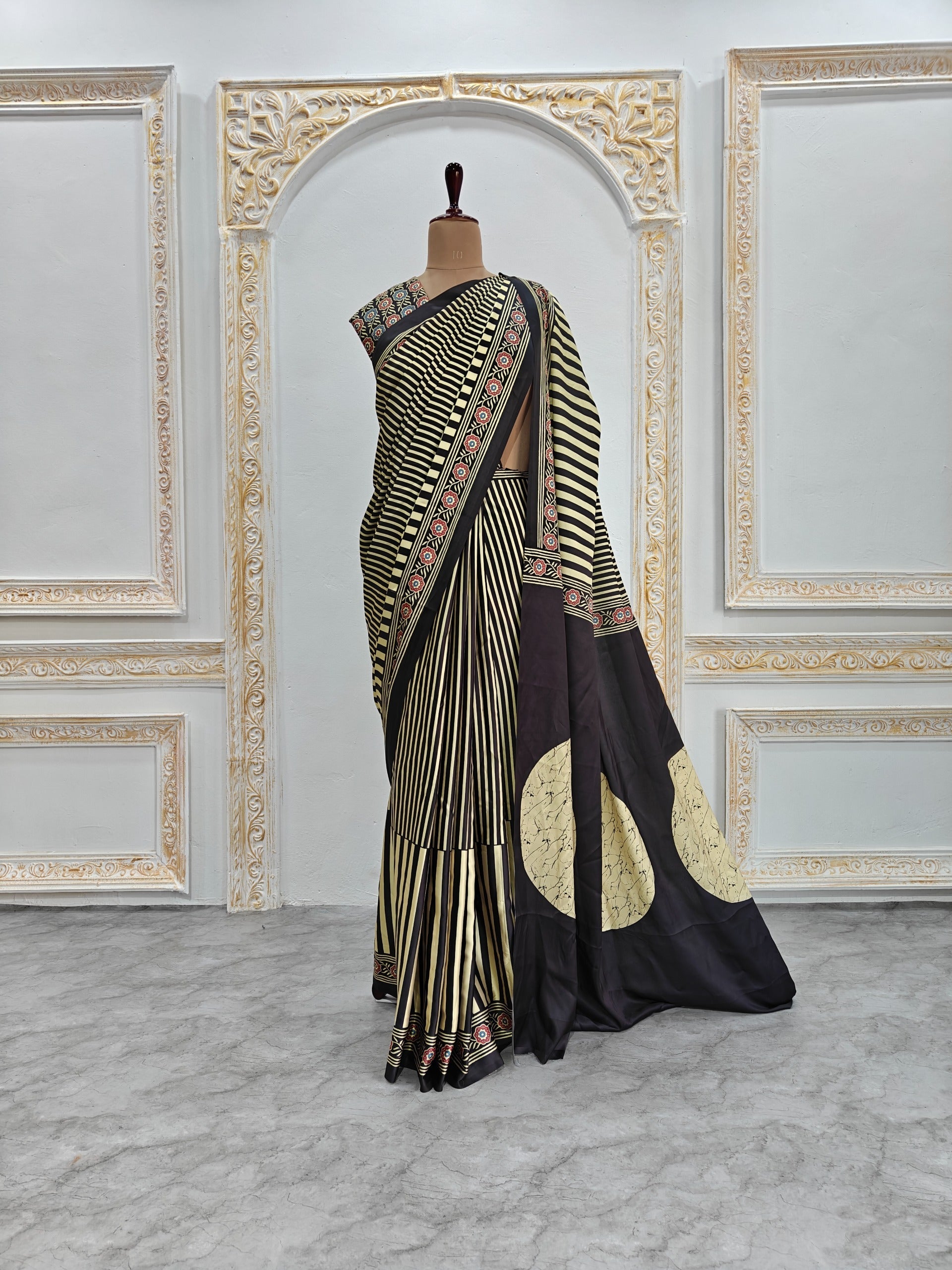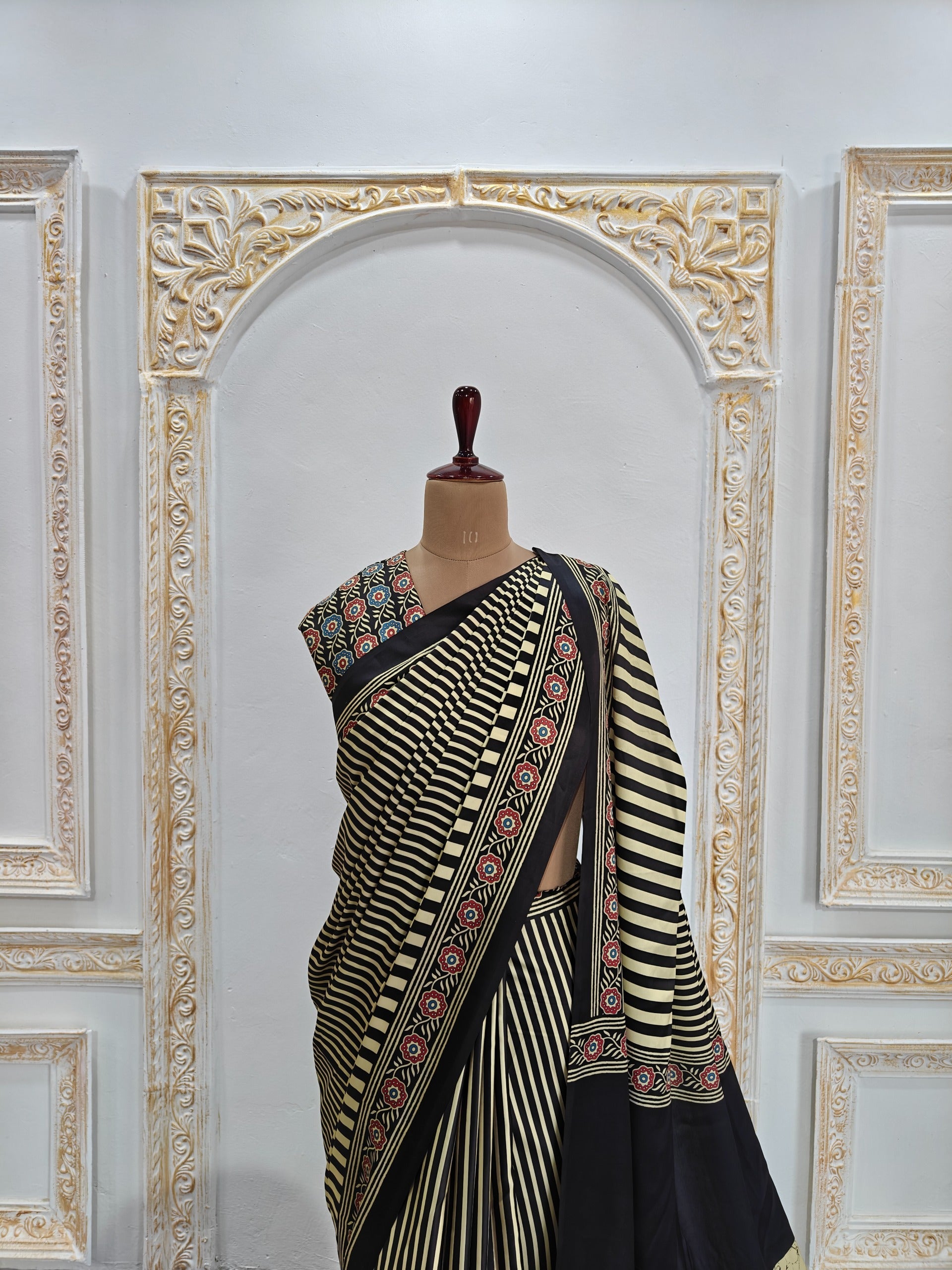 Ajrakh Printed Modal Silk Saree With Ajrakh Blouse