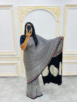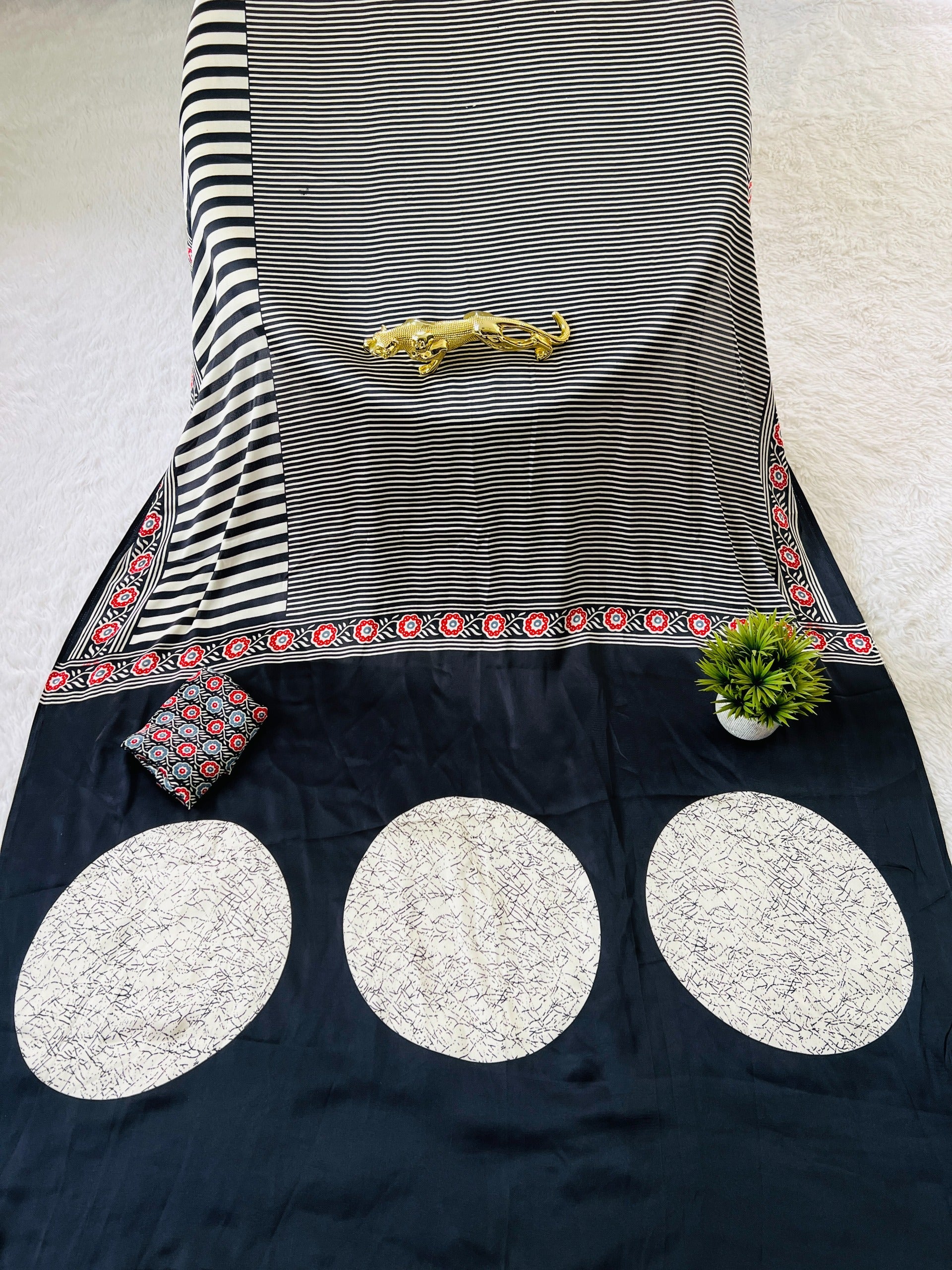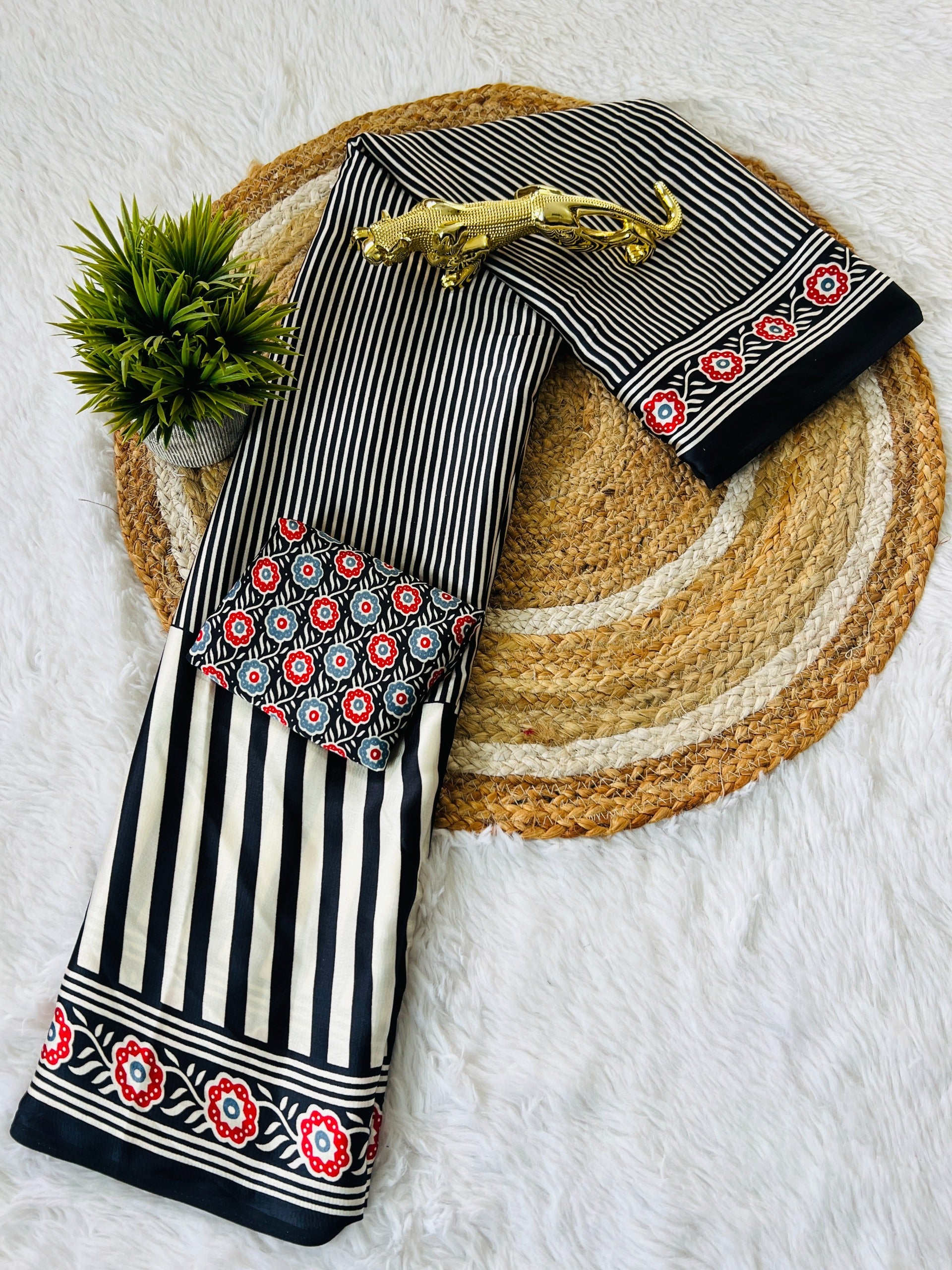 Saree work : Digital Print Border with Ajrakh Rich Pallu With Contrast Blouse