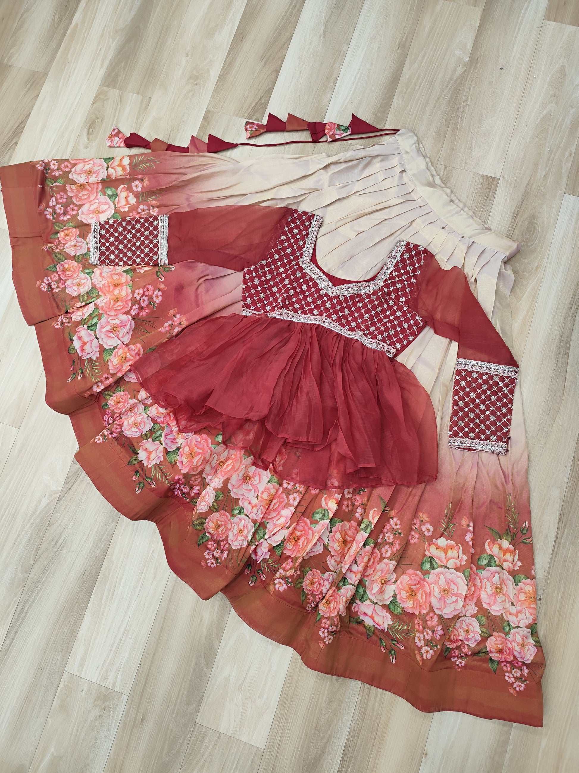 Gajri Elegant Floral Cosmos Print Lehenga Set with Embroidered Peplum Top