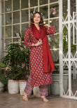 Beautiful Red Pure Cotton Fabric Kurtis Pant Set