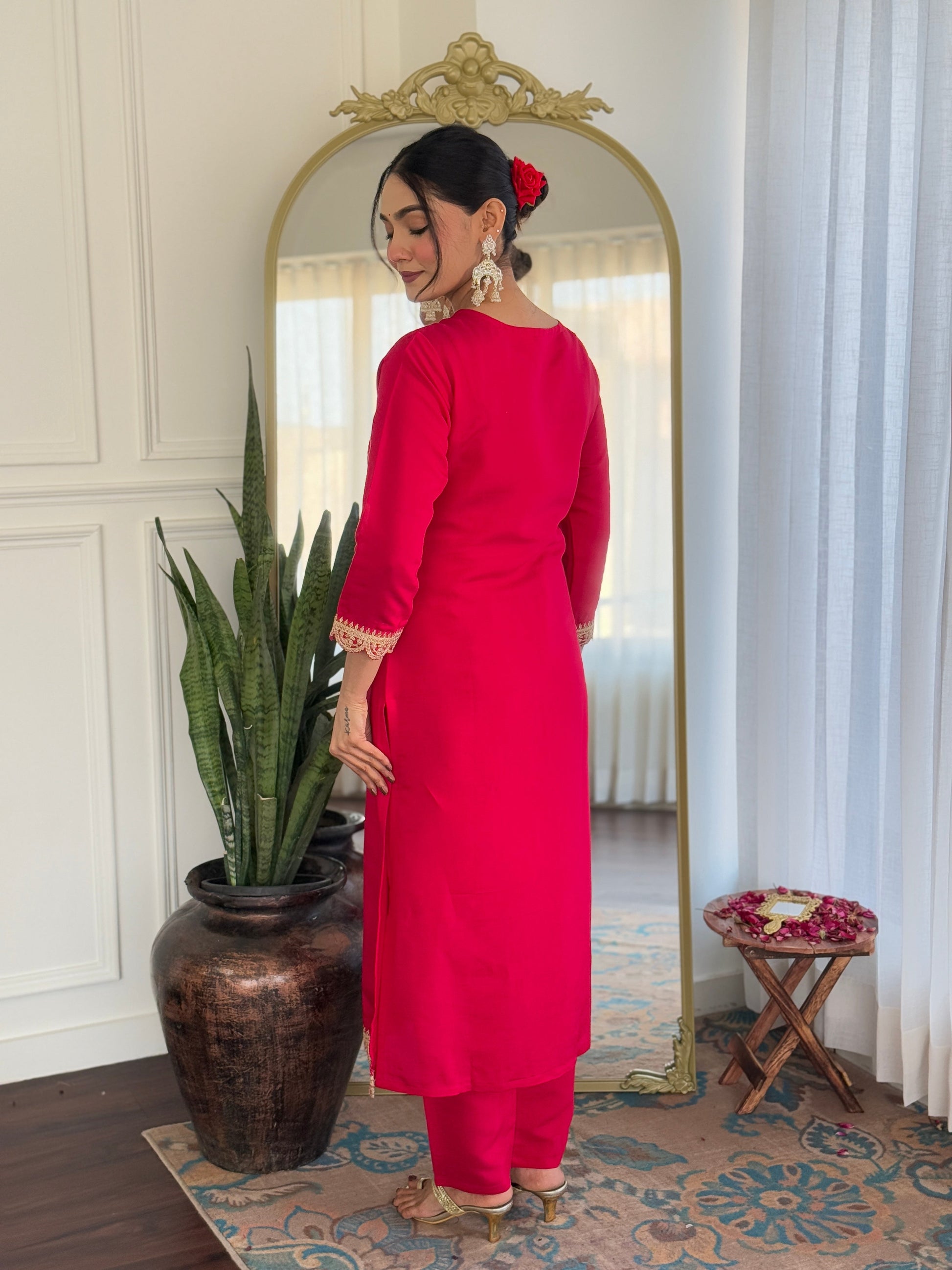 Beautiful Rani Color Viscose Rayon Fabric Kurtis Pant Set
