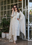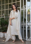 Beautiful White Viscose Chanderi Fabric Kurtis Pant Set