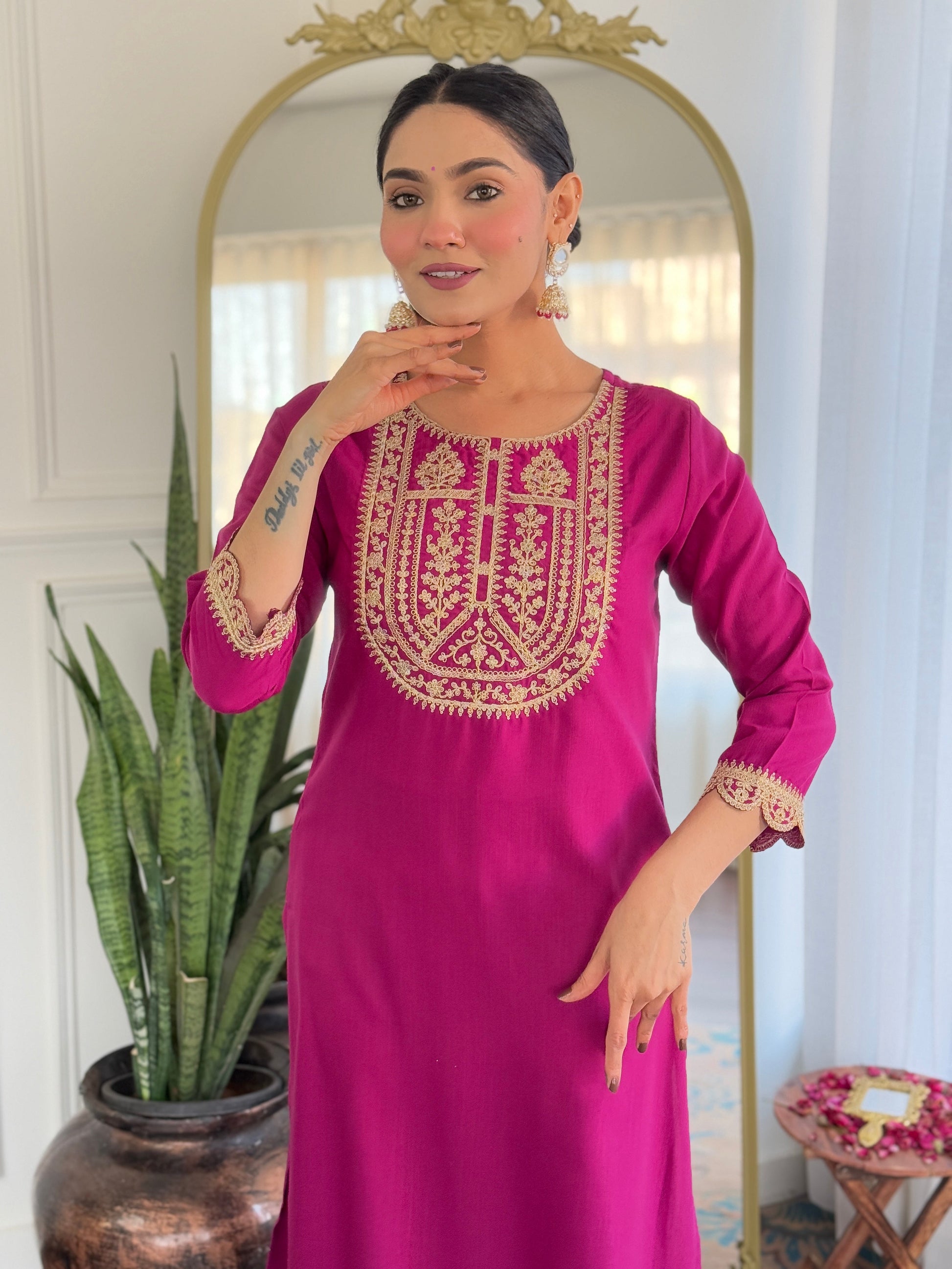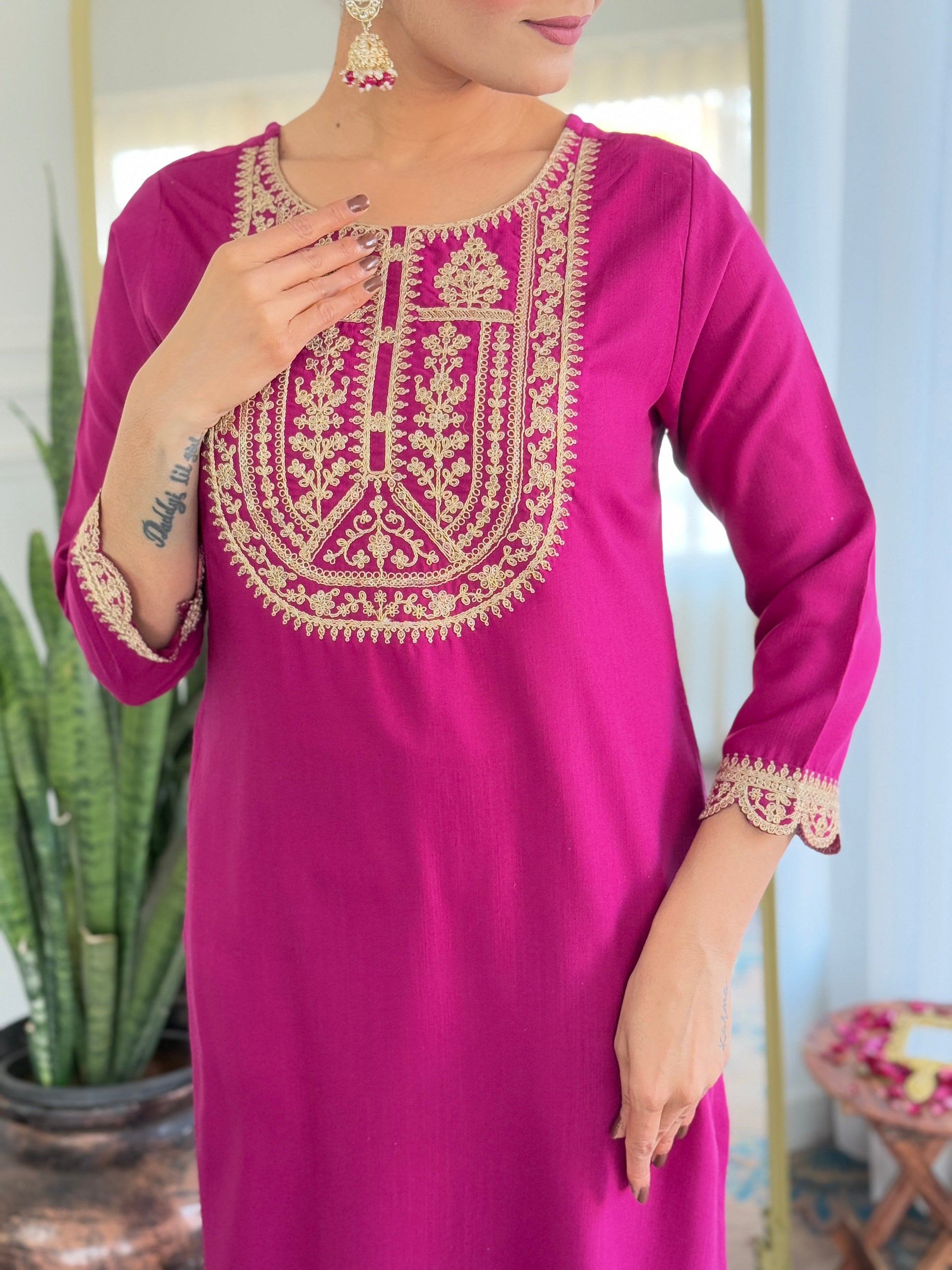 Beautiful Wine Color Viscose Rayon Fabric Kurtis Pant Set
