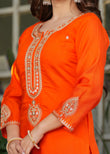 Beautiful Orange Viscose Chanderi Fabric Kurtis Pant Set