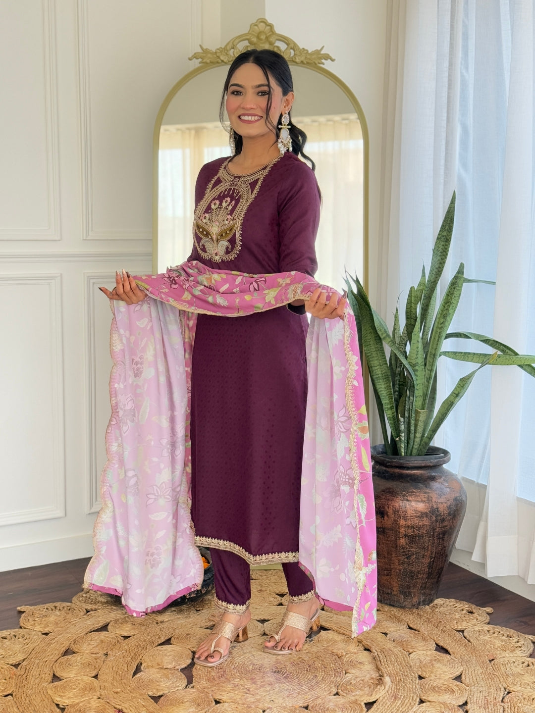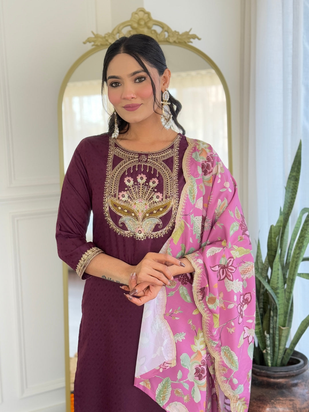 Beautiful Wine Color Viscose Rayon Fabric Kurtis Pant Set