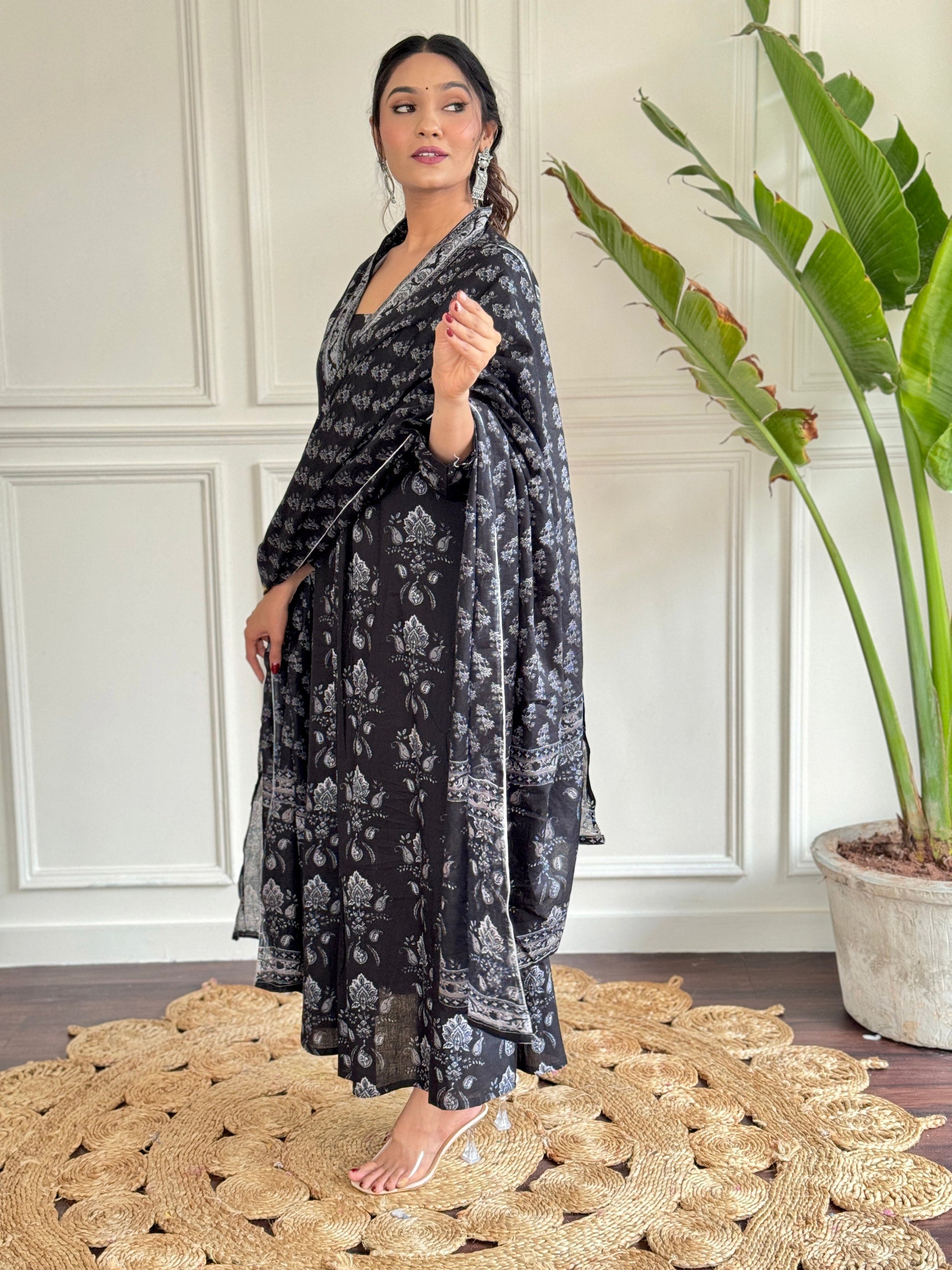 Beautiful Black Pure Cotton Fabric Kurtis Pant Set