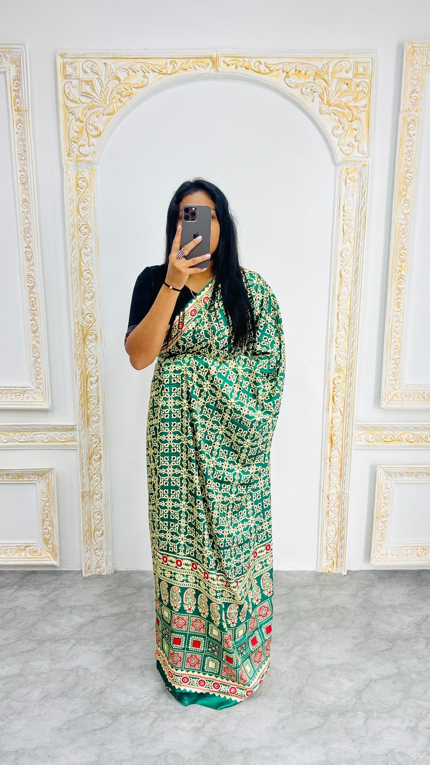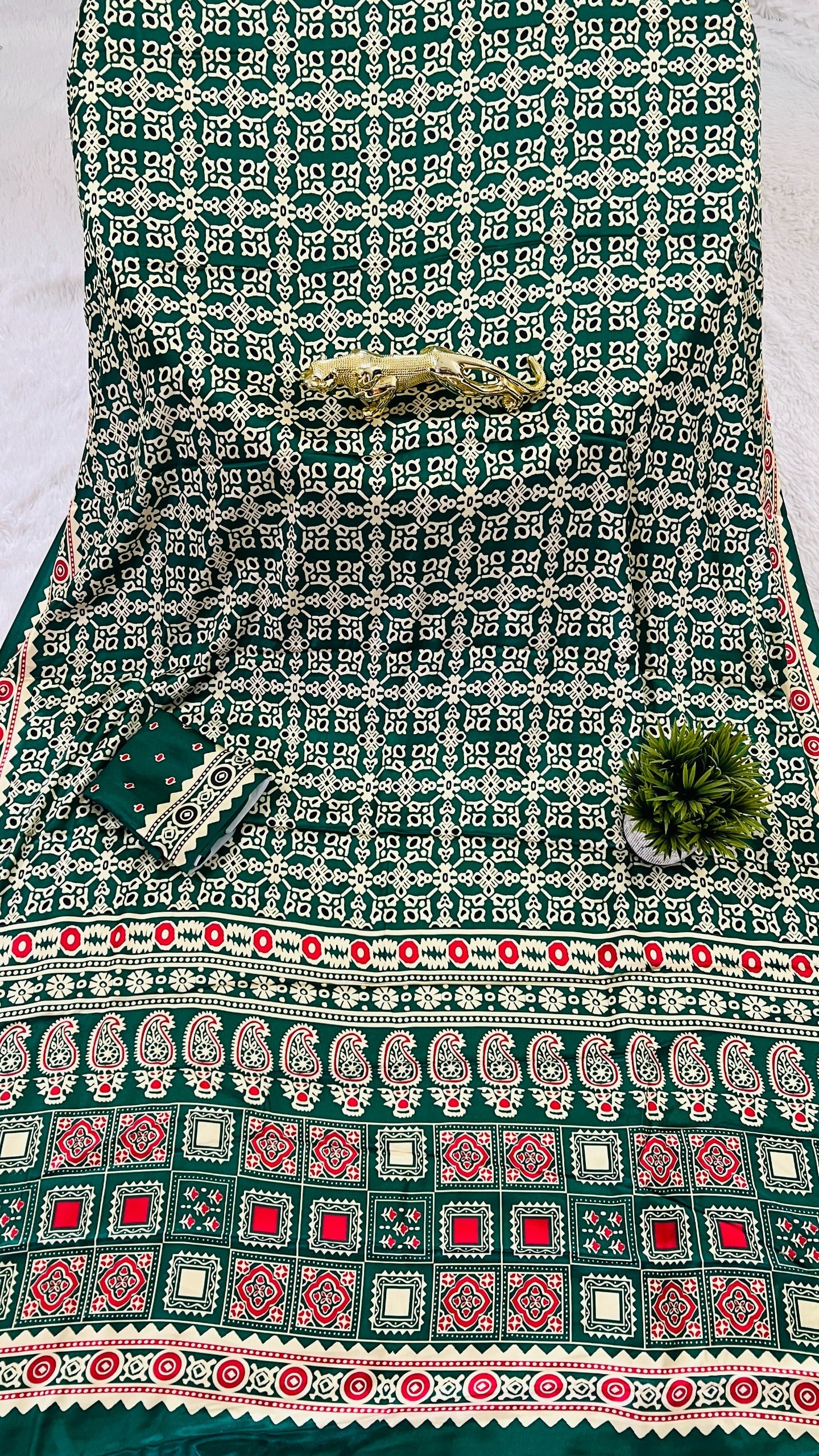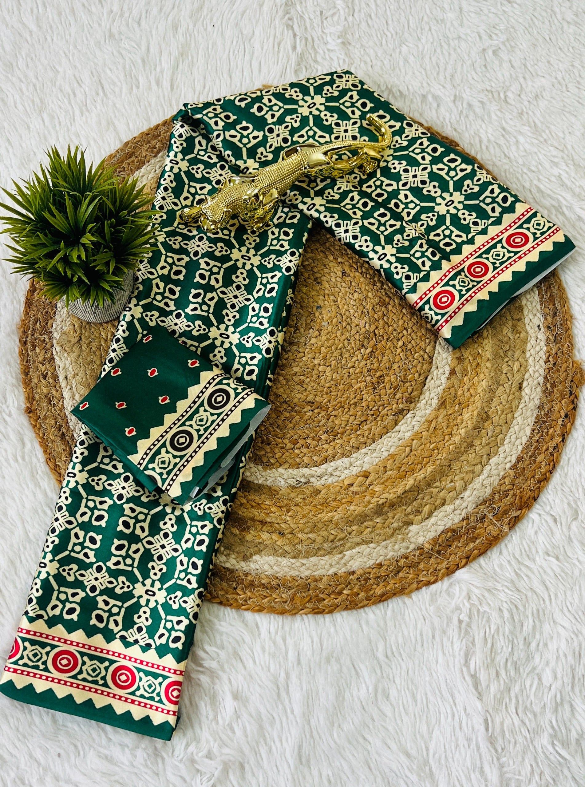Green Ajrakh Primum Modal Silk Saree With Blouse