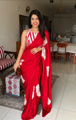 Red Ajrakh Primum Modal Silk Saree With Blouse