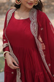 💖 Desirable Women's Fully Flaired Gown Made With Faux Georgette Fabrics and Designer Embroidered Dupatta 💃🏻