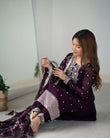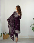 WINE BEAUTIFUL PURE BLOOMING RANGOLI SILK FABRIC STRAIGHT FIT KURTA WITH DUPPTA SET