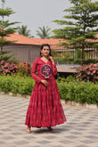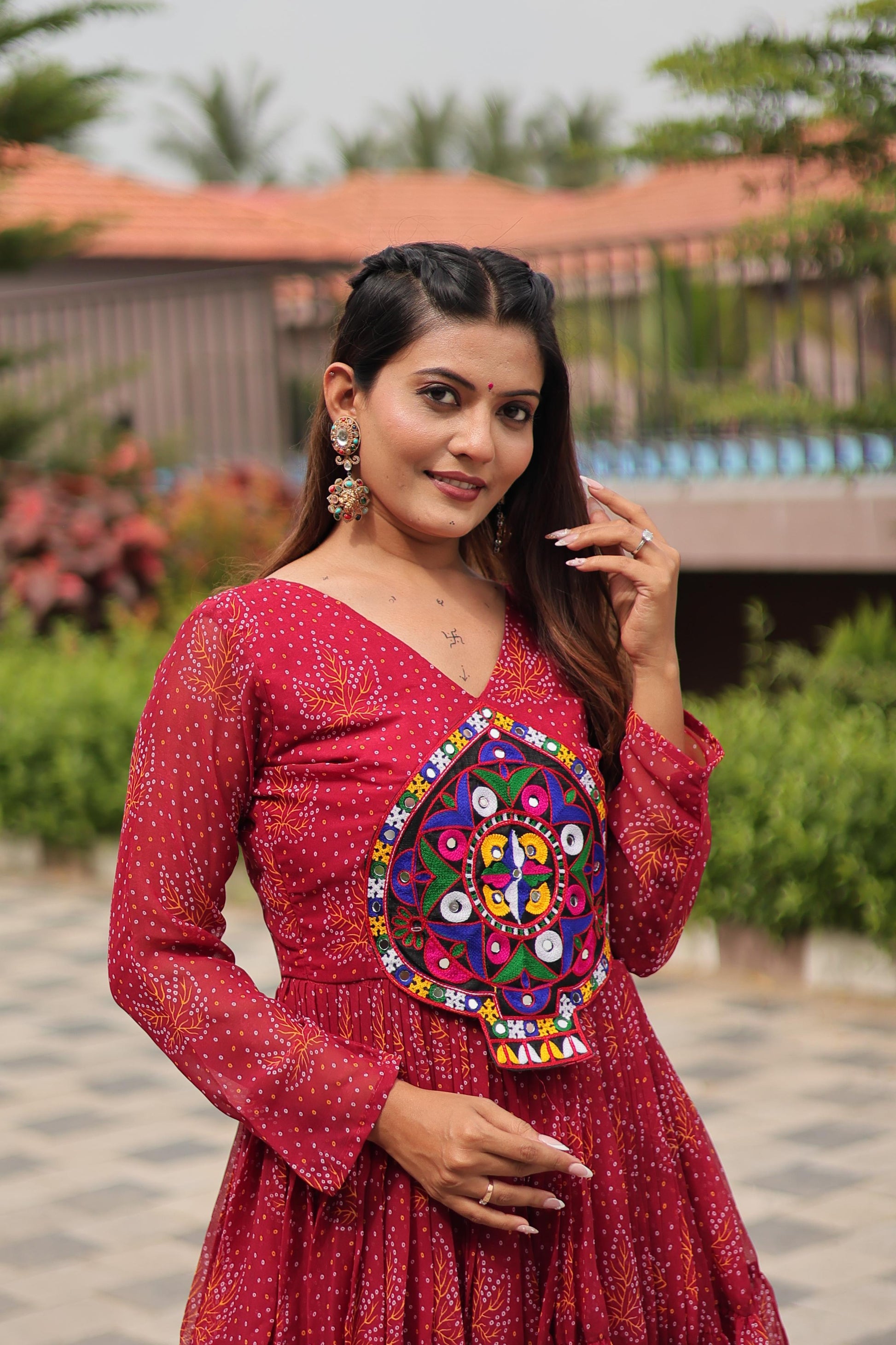 Red Navratri Gown Faux Georgette with Heavy Gamathi Mirror Work Dandiya Nights