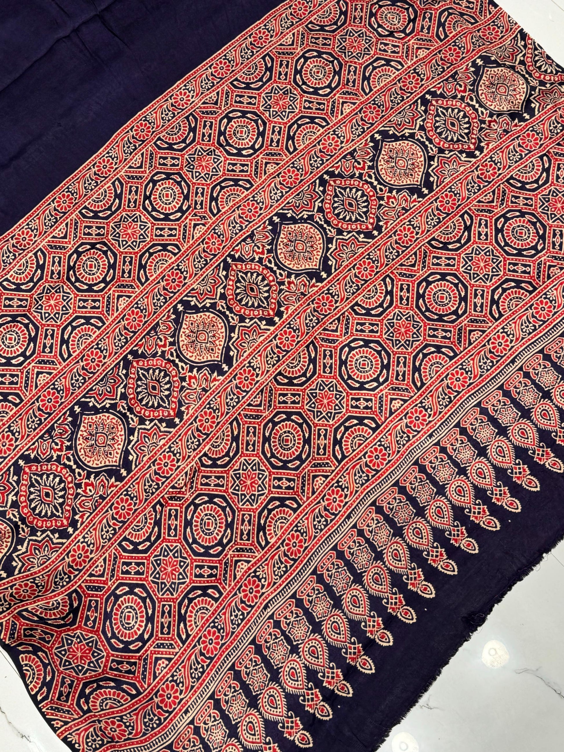 New Ajrakh Modal Silk Ajrakh Fancy Pallu Saree