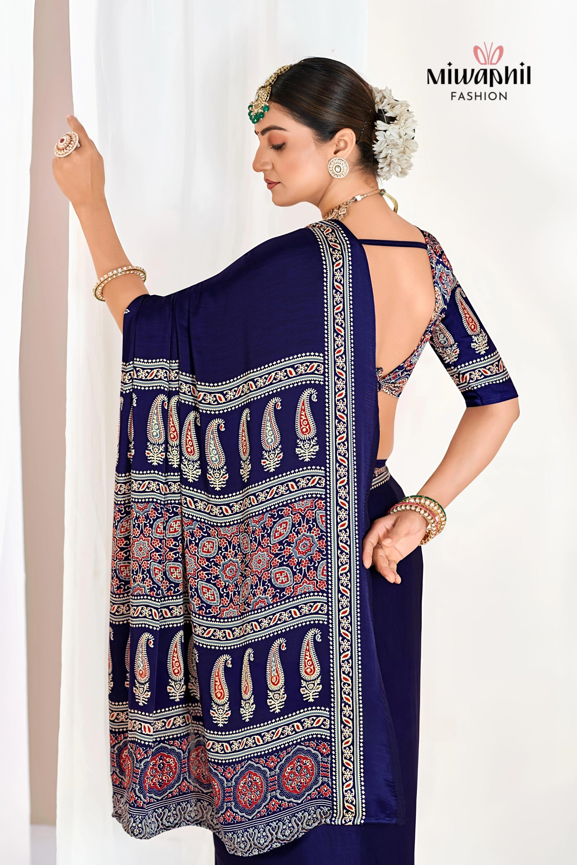 New Ajrakh Modal Silk Ajrakh Fancy Pallu Saree