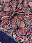 Blue Ajrakh Printed Soft Modal Silk Natural Print Saree P2