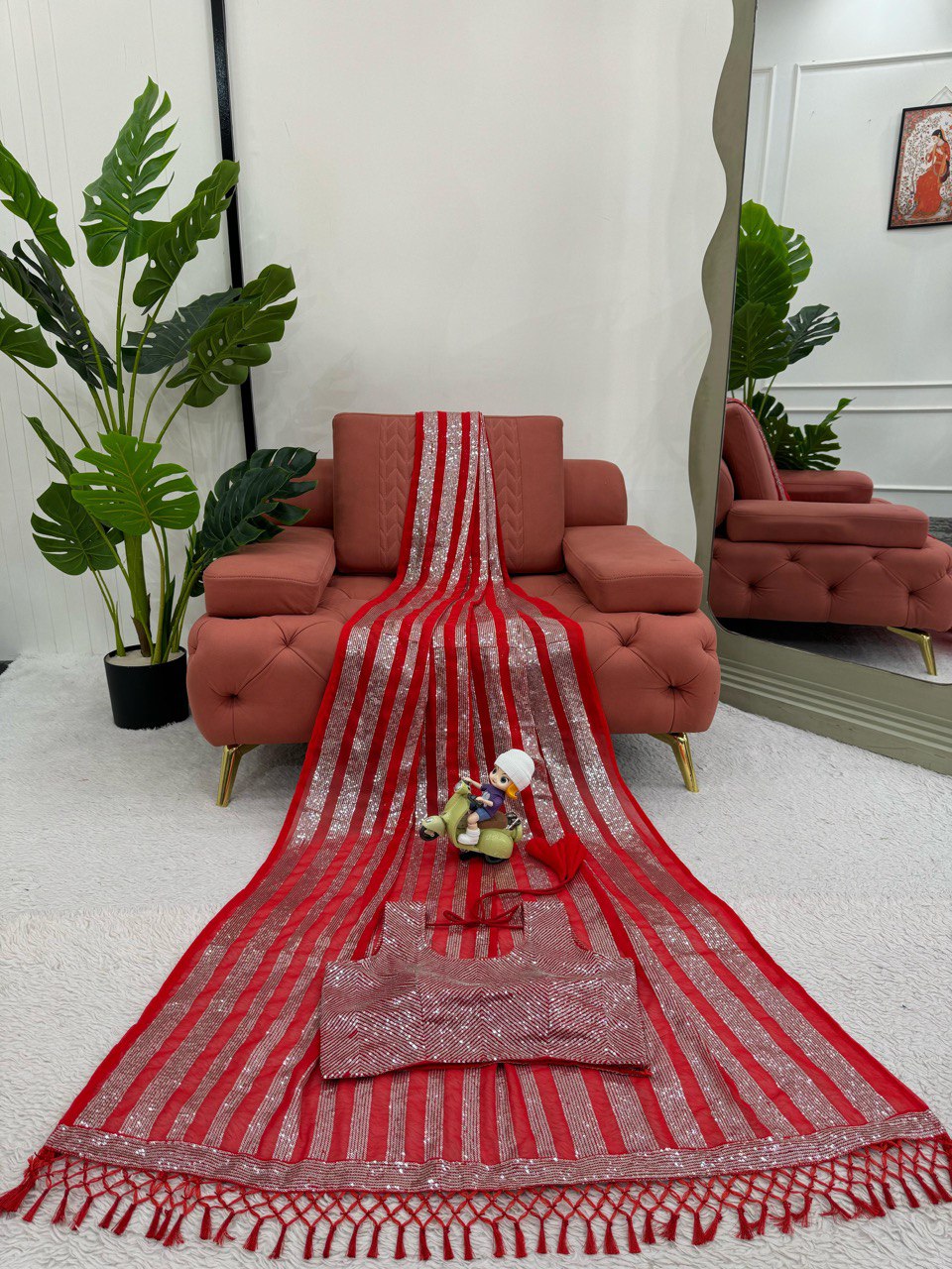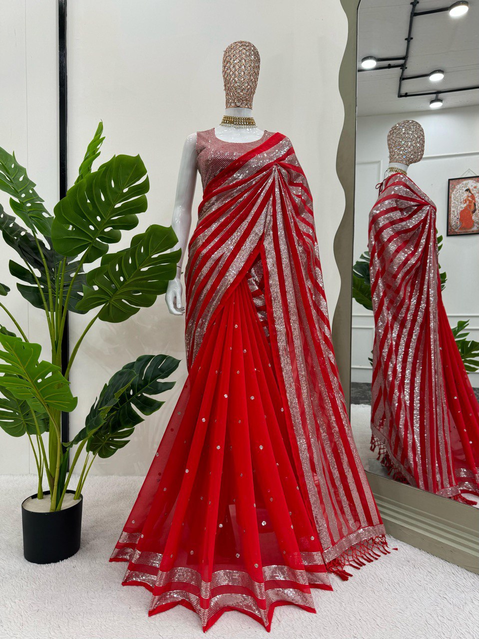 Looking some one for this same colour beautiful Designer Saree on Faux Georgette Fabric with Thread & Sequence work and blouse on Jimmy Chu Fabric with Thread & Sequence work.