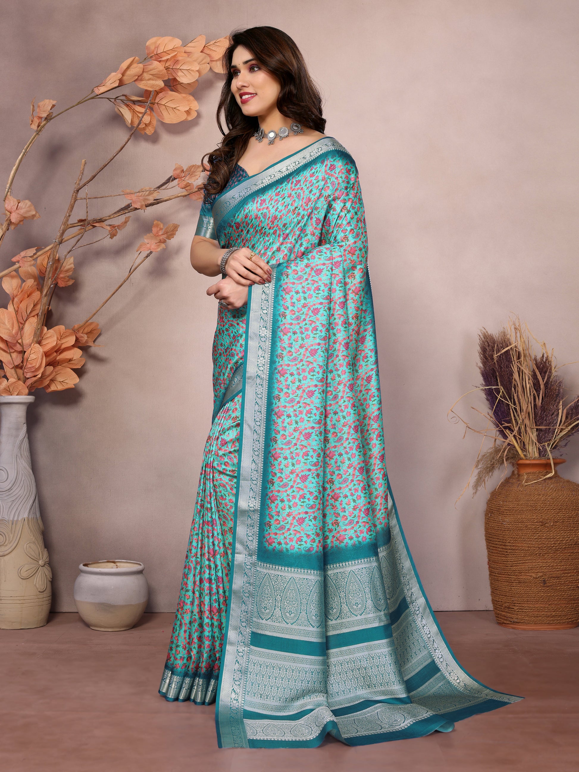🎏 FABRIC :- Vichitra Silk With Beautiful Digital Print Rich Pallu Border