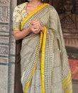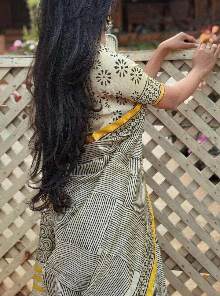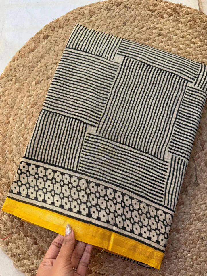 Yellow Black Line Designer MulCotton Saree