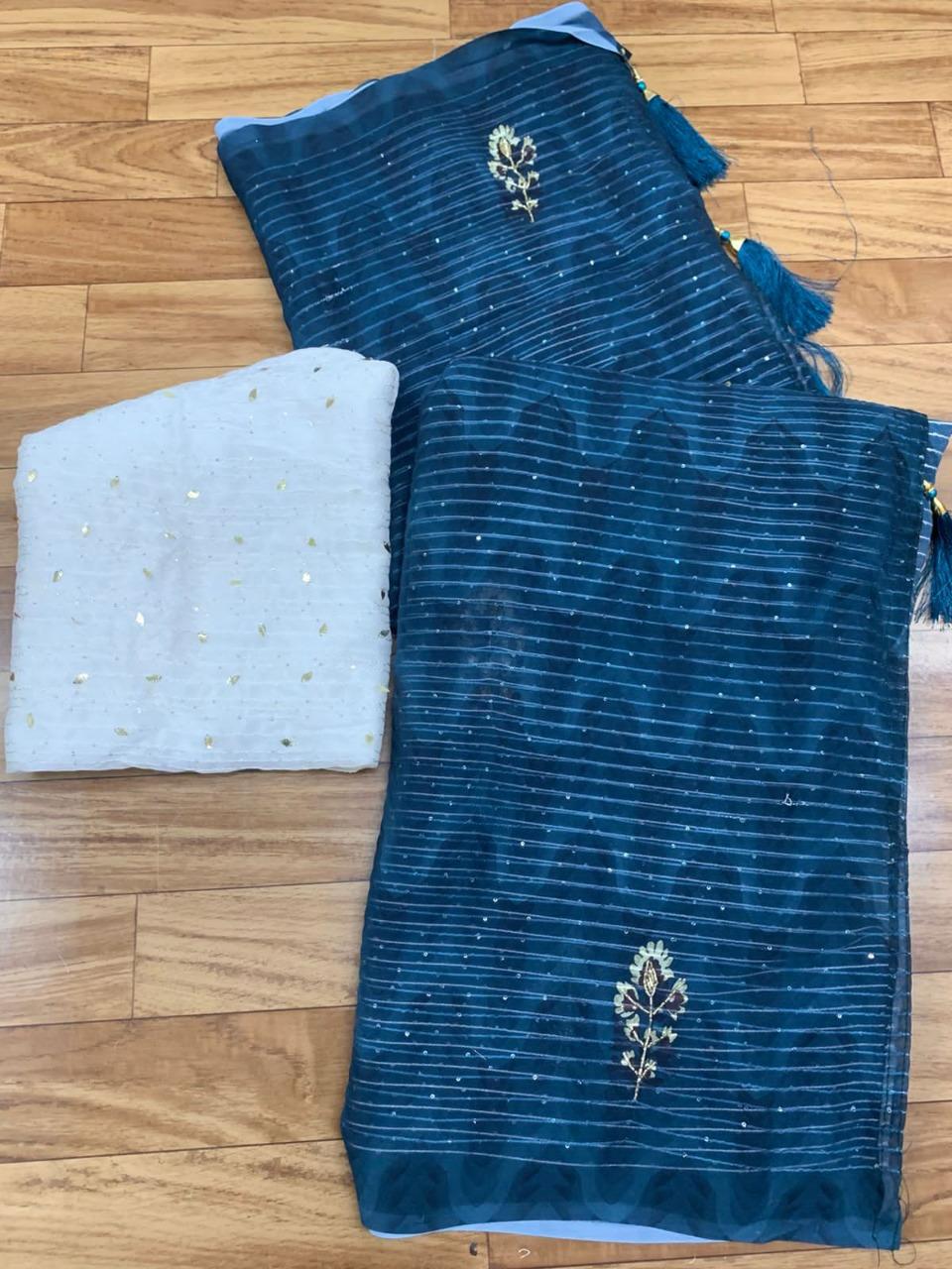 🌈 BLOUSE :- Beglory Silk With Crochet 2.MM Work And Hanging 9.MM Sequence Work