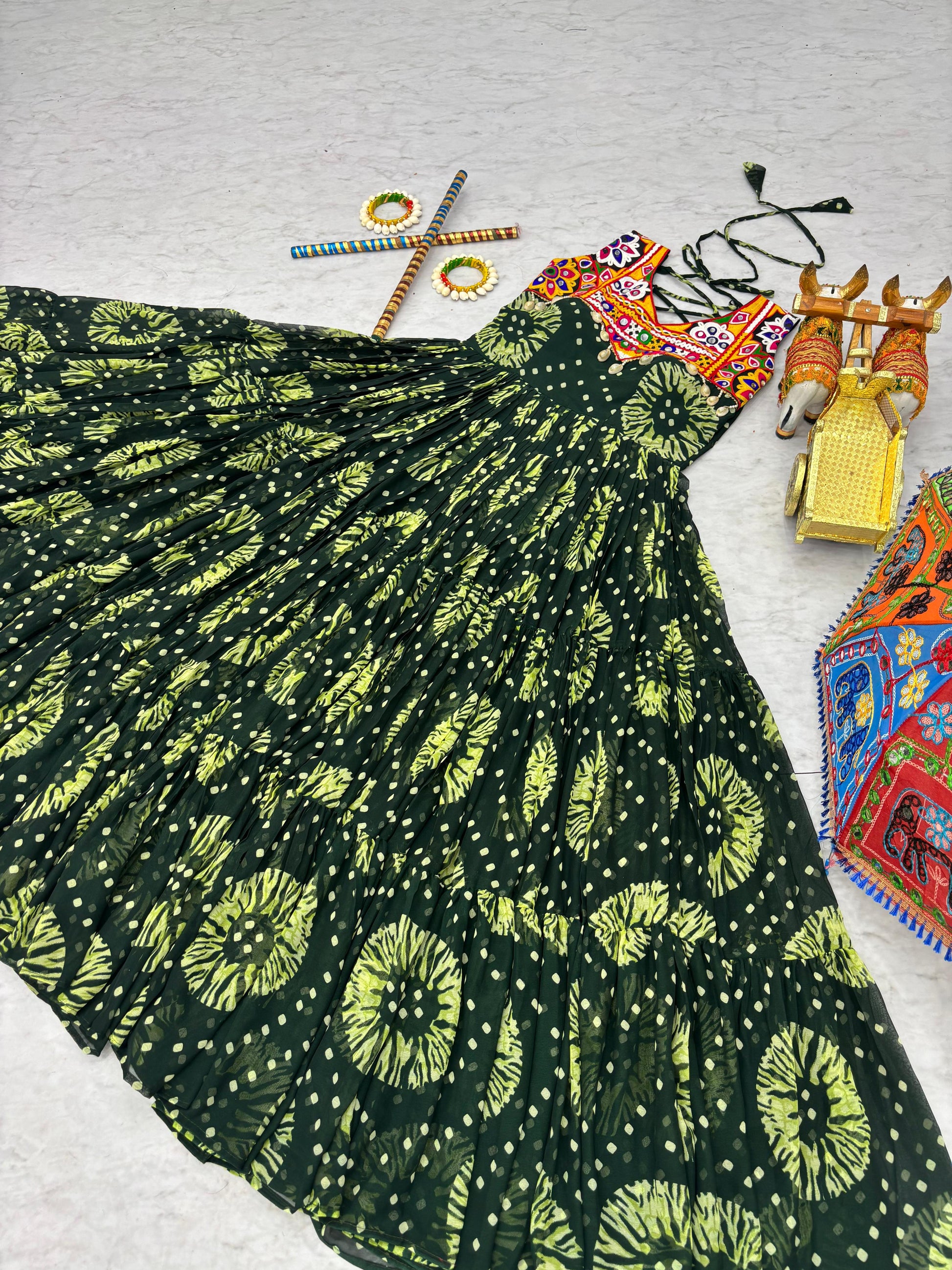 Green Celebrate The Spirit Of Navratri In This Vibrant Faux Georgette Gamthi Work Gowns
