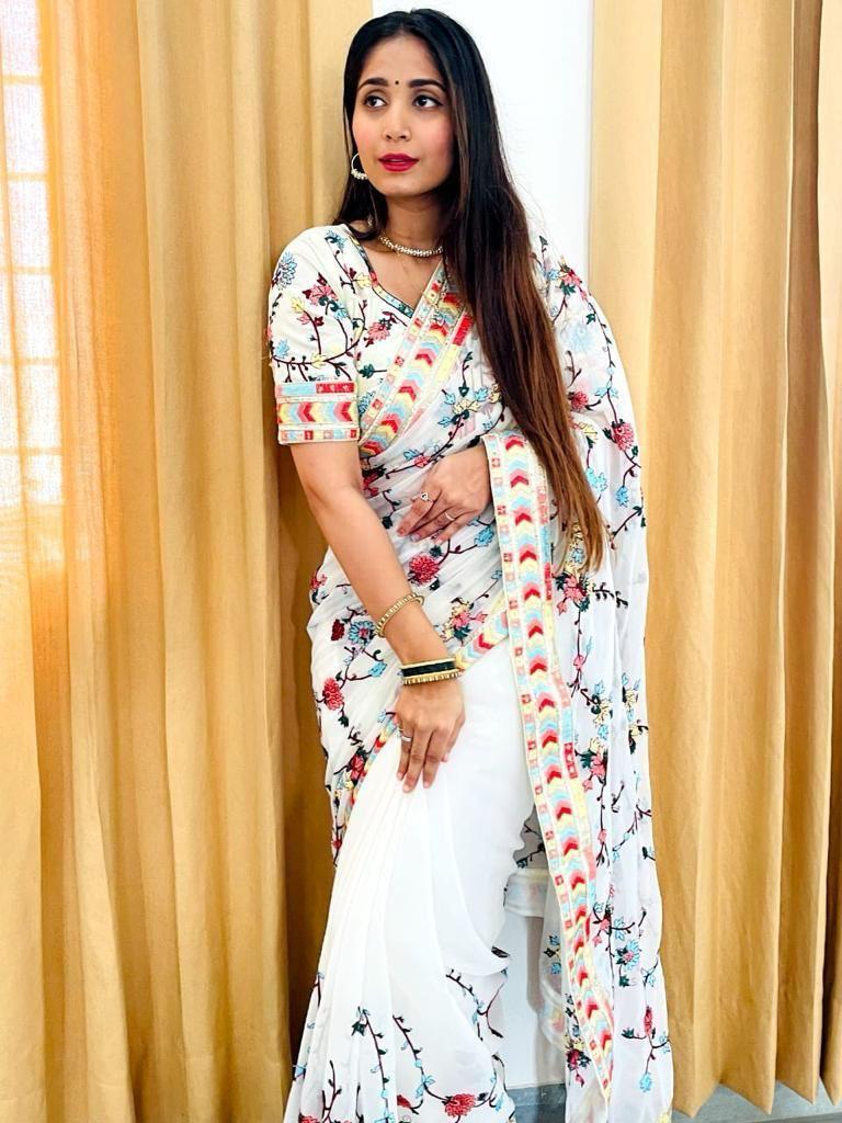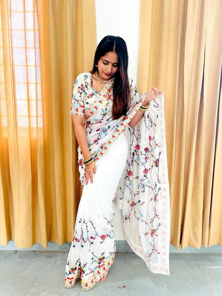 🎏 FABRIC :- Heavy Fox Georgette With Multi Embroidery Thread & 3.MM Sequence🔖 Work All Over Saree