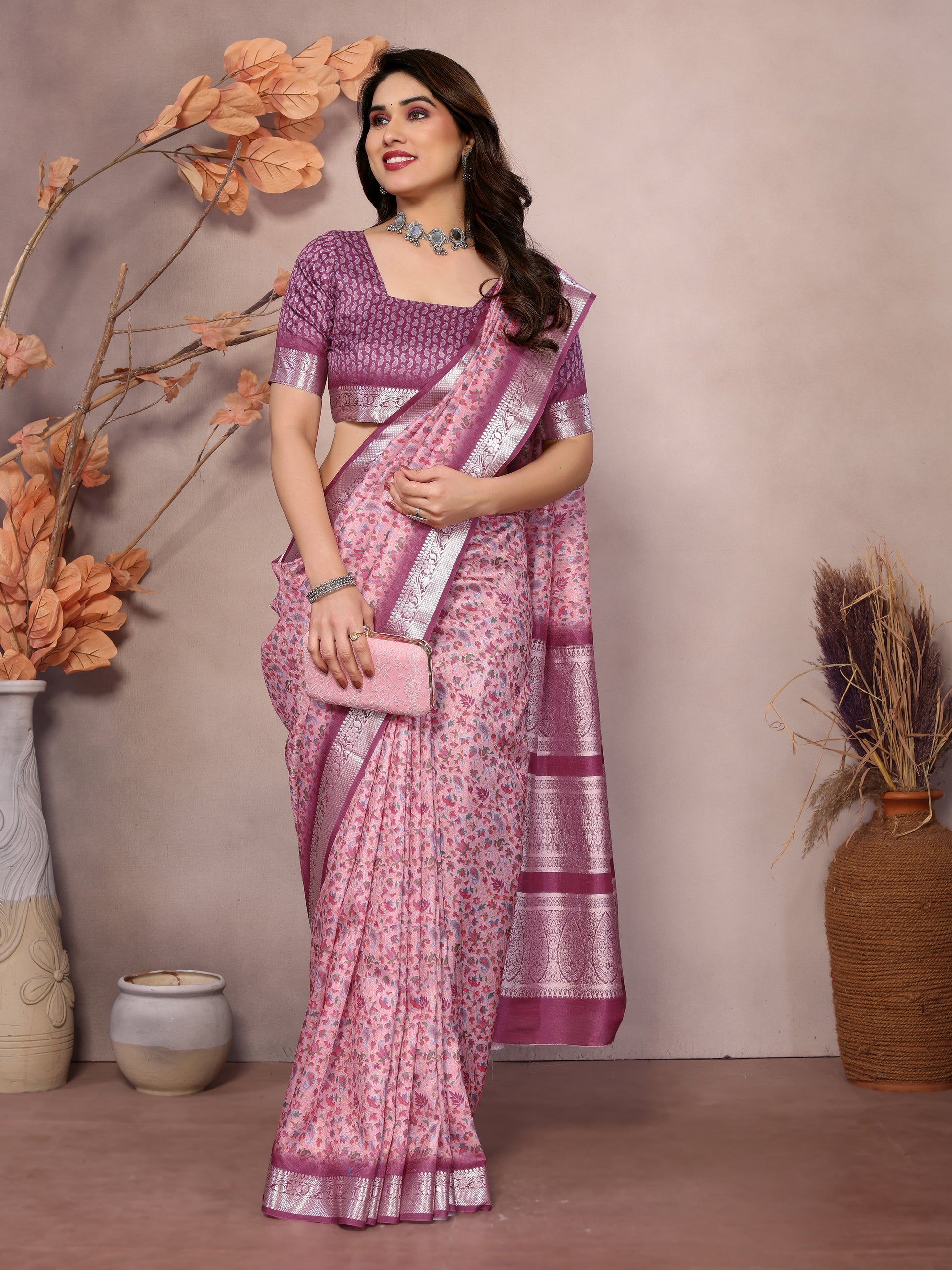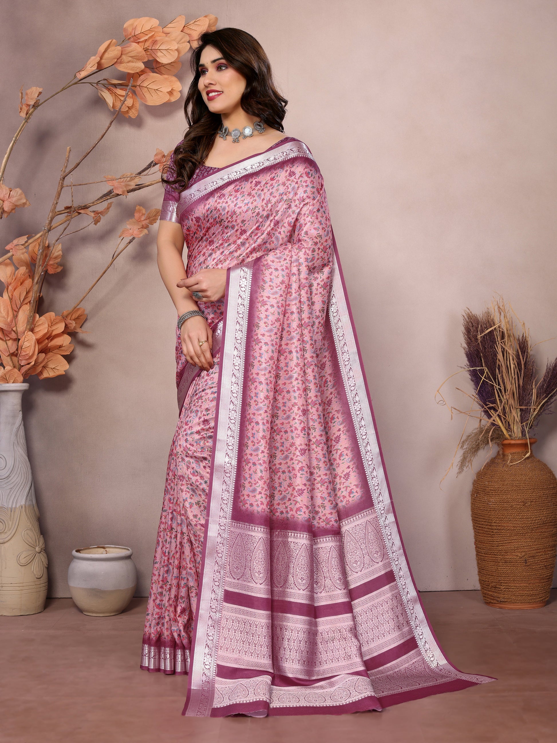 🎏 FABRIC :- Vichitra Silk With Beautiful Digital Print Rich Pallu Border
