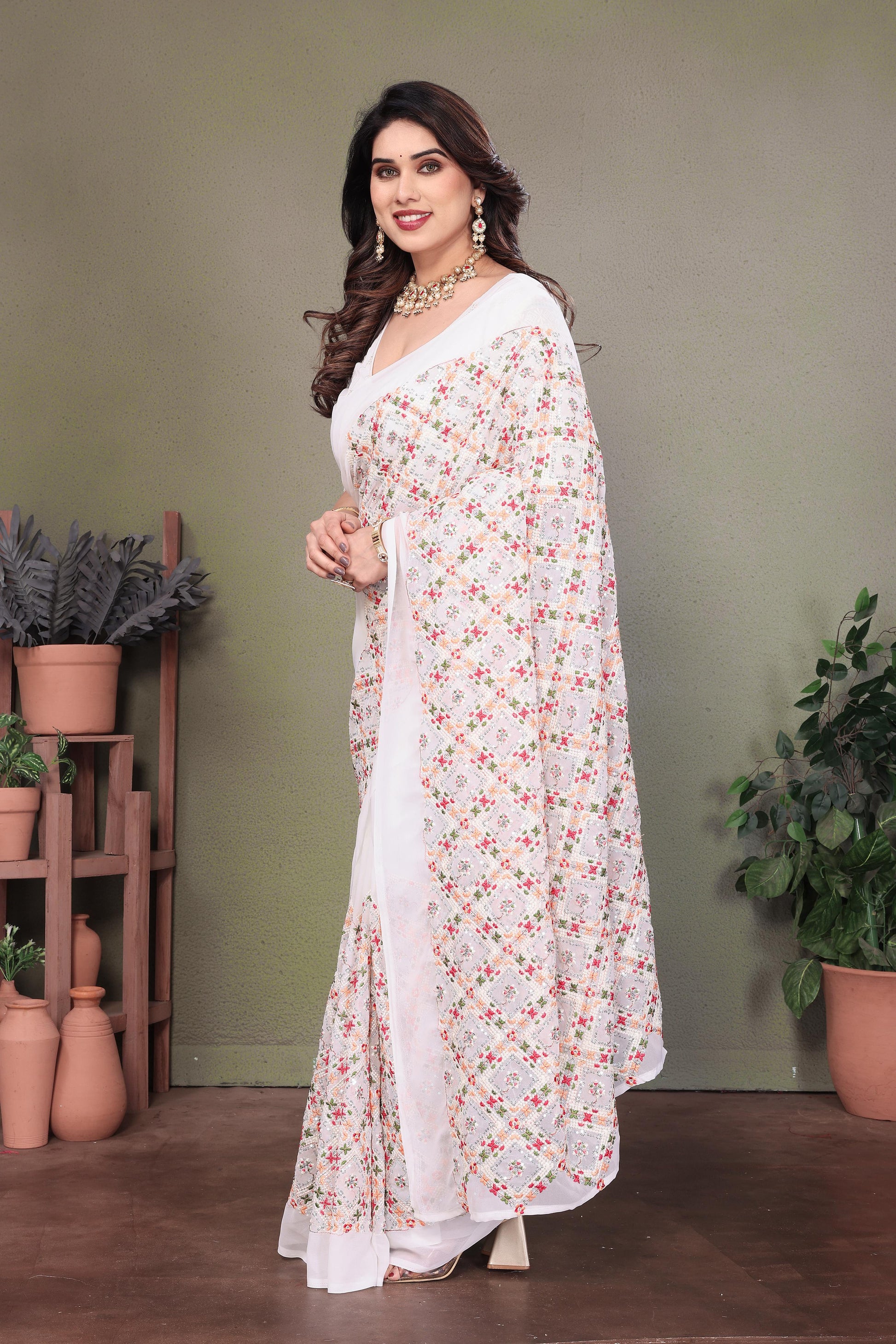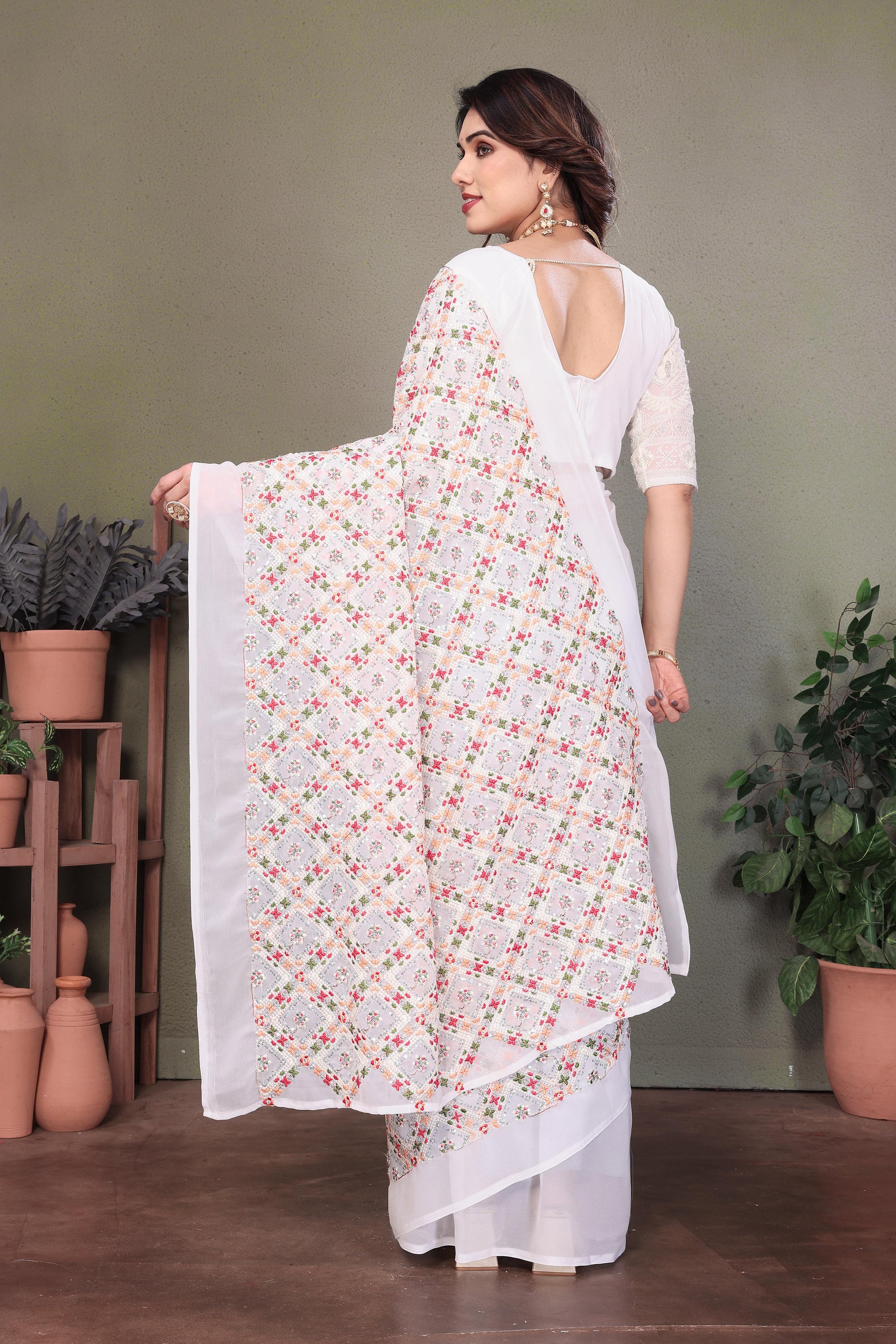 Multi Color Exclusive Beautiful Embroidery Work Saree