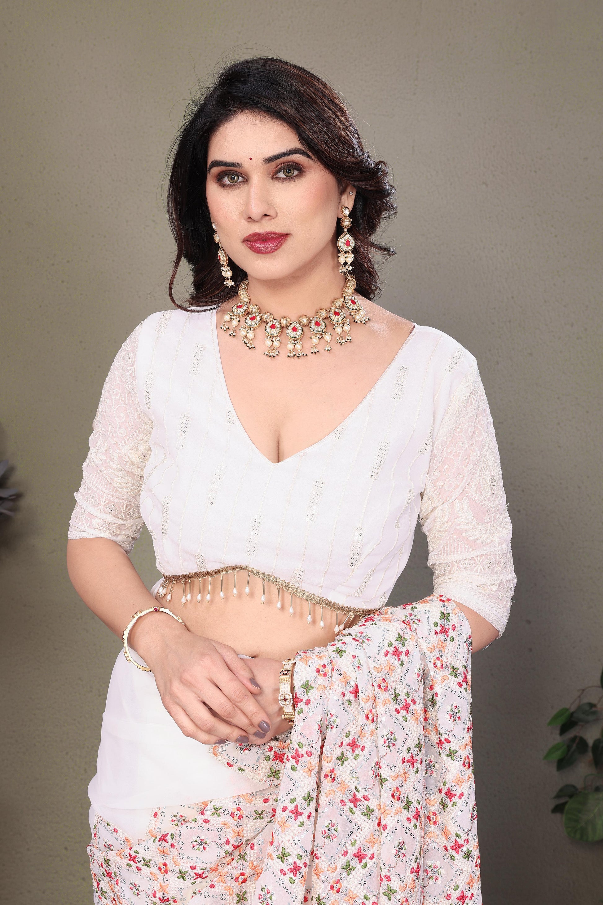 🎏 BLOUSE :- Fox Georgette With Multi Embroidery & 3.MM Sequence Work