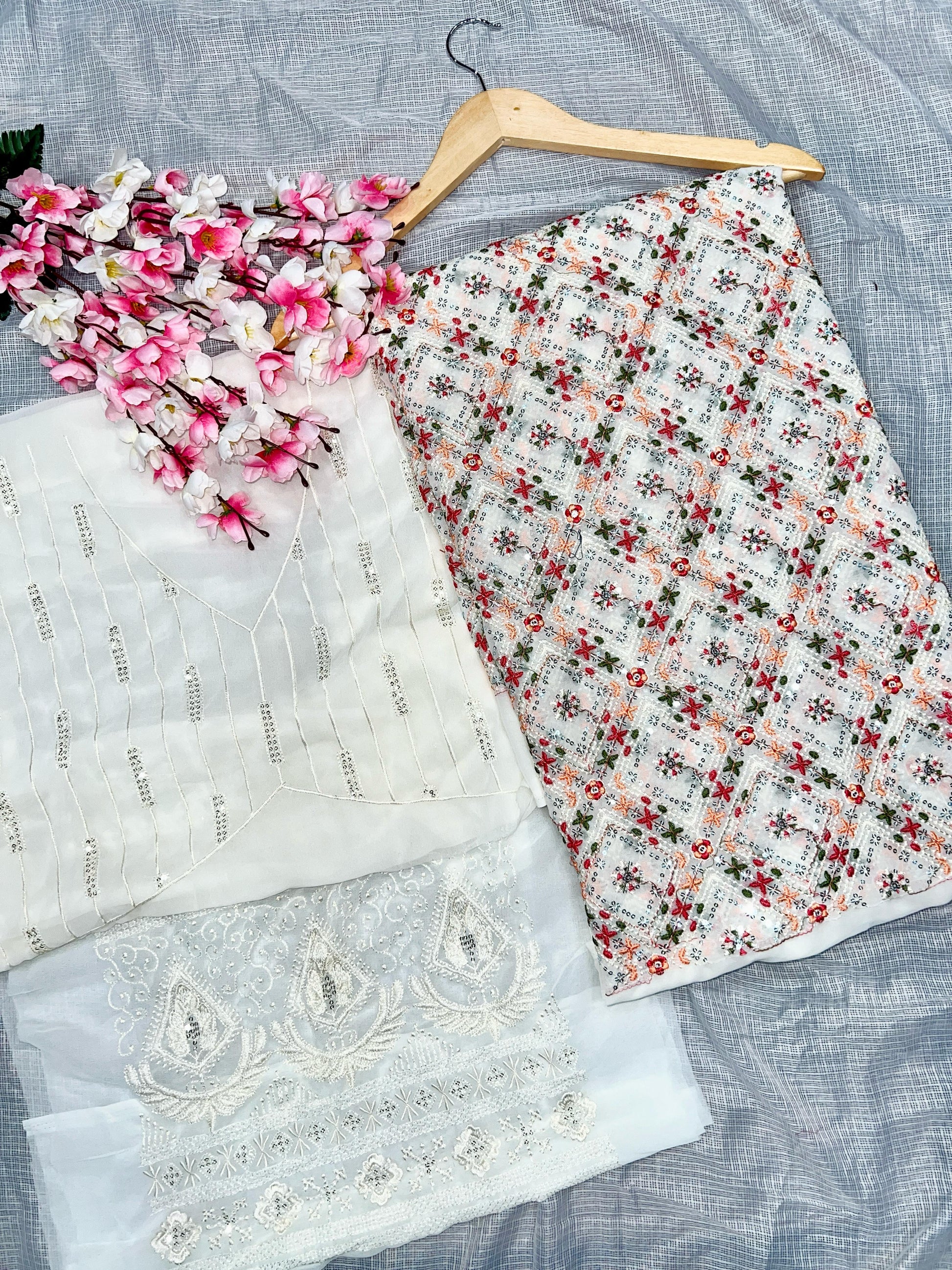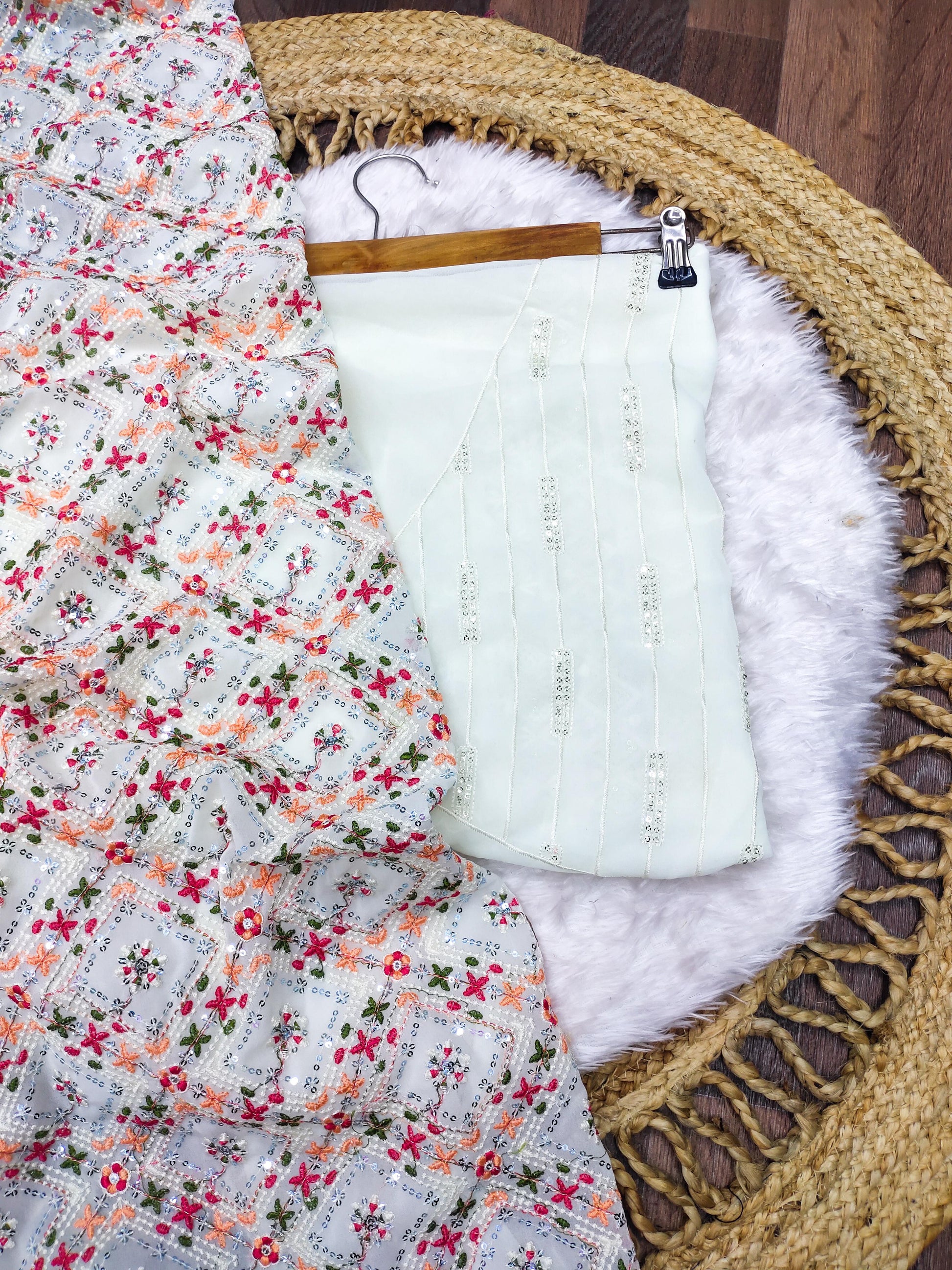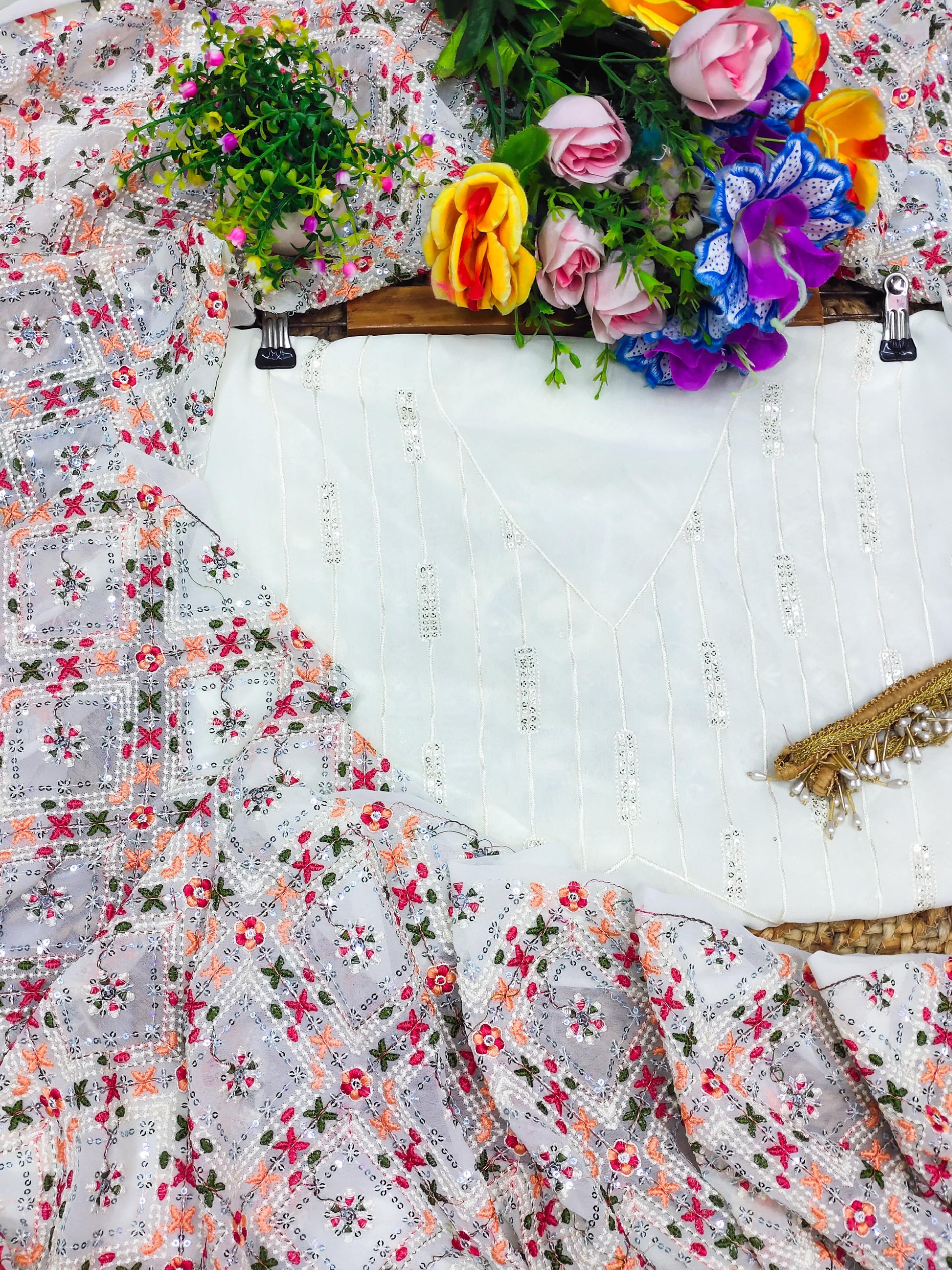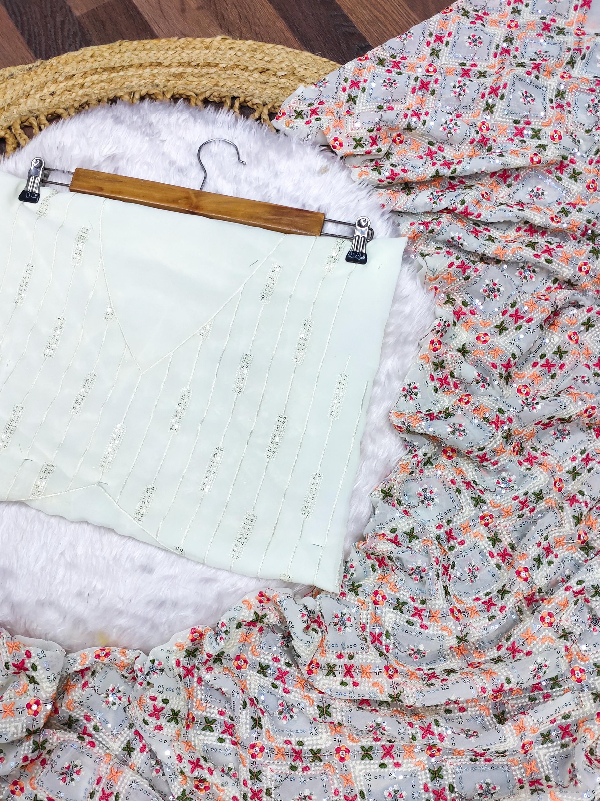 🎏 FABRIC :- Heavy Fox Georgette With Multi Embroidery & 3.MM Sequence🔖 Work In Pallu_Skirt Saree