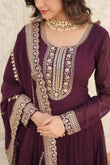 Faux Blooming Sequin Wine Gown with Embroidered Dupatta
