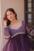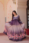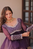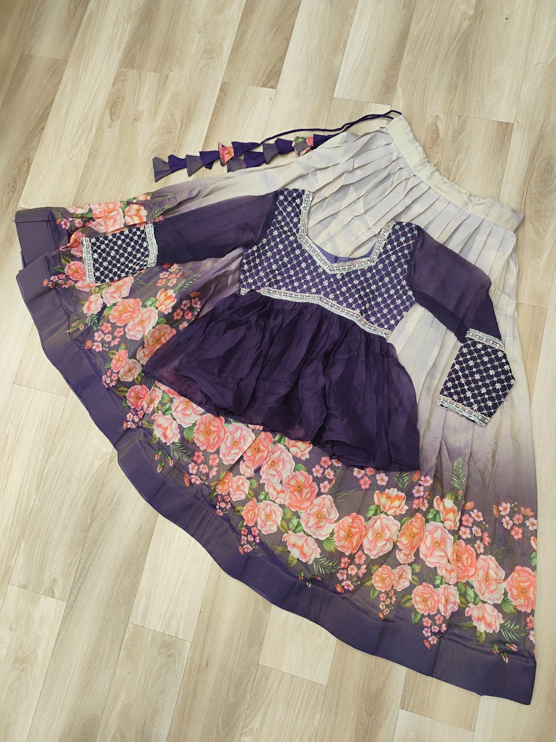 Purple Elegant Floral Cosmos Print Lehenga Set with Embroidered Peplum Top