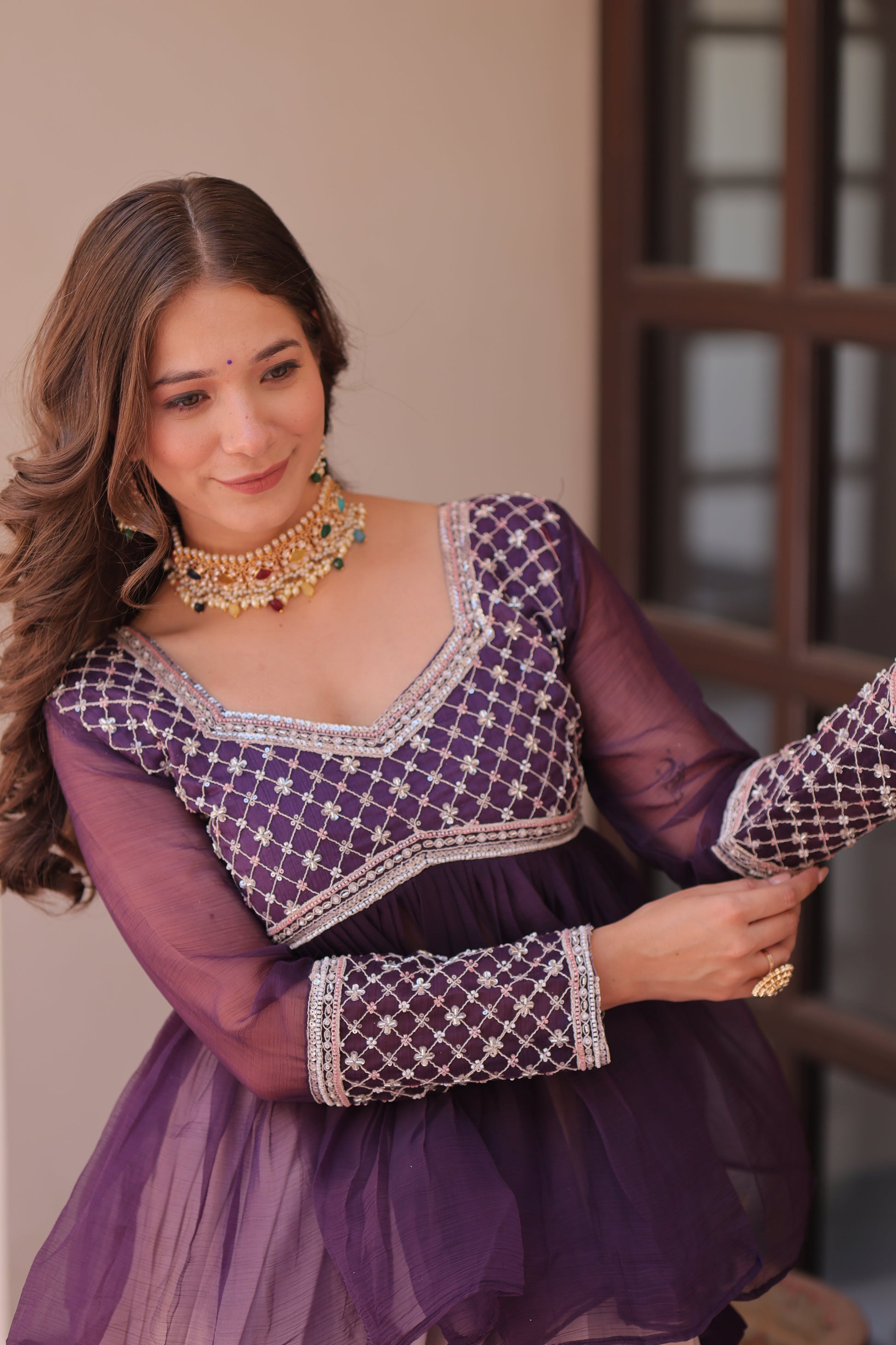 ๐๐ป FABRIC & WORKย :- Chiffon with Beads Embroidered work