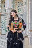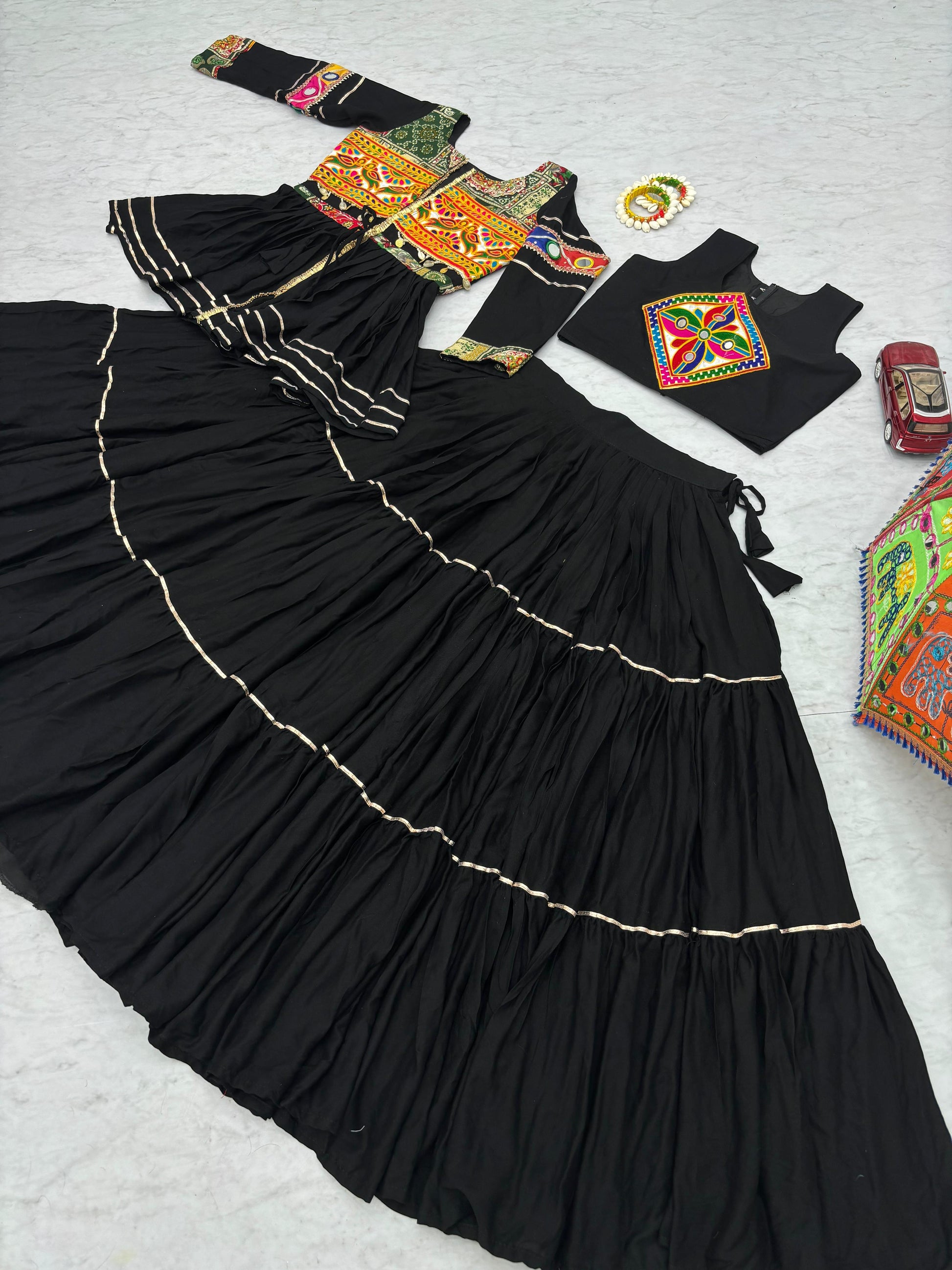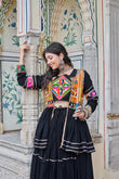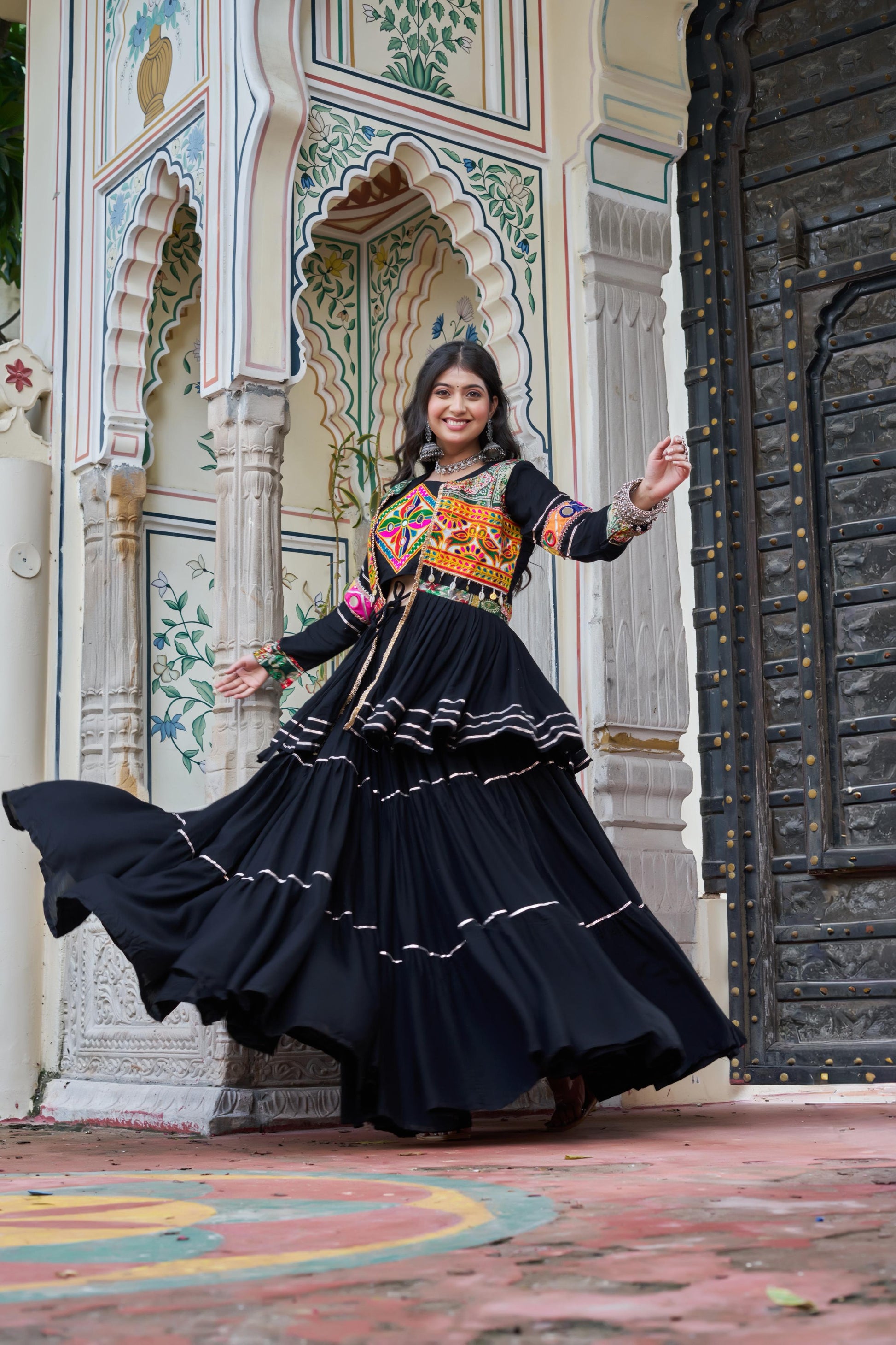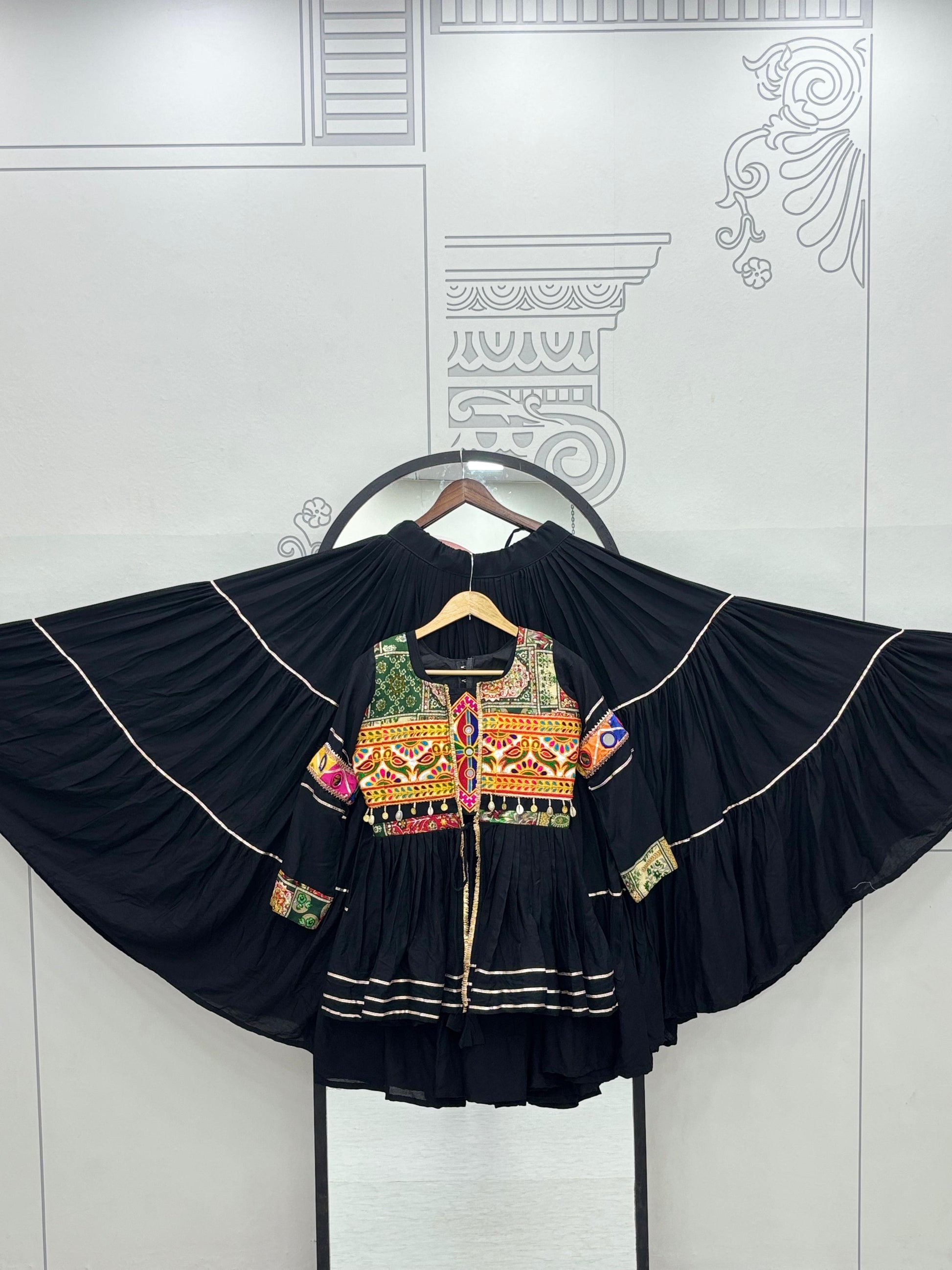 Black Gamthi Mirror Work Navratri Lehenga Set Cotton Perfect for Garba Nights