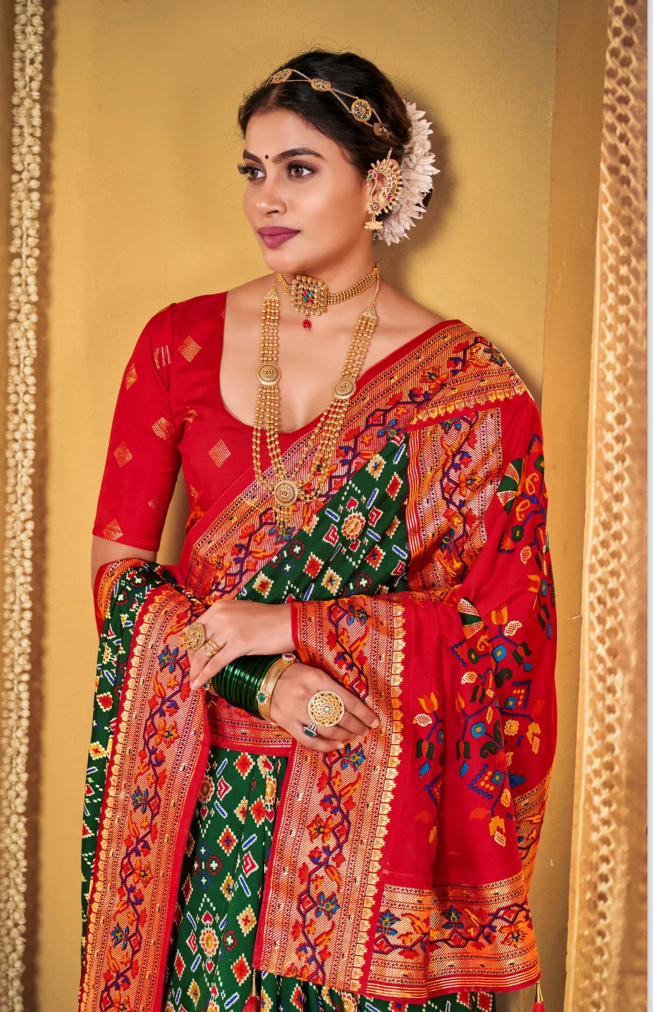 Green Soft Dola Silk Paithani Patola Saree SBS5