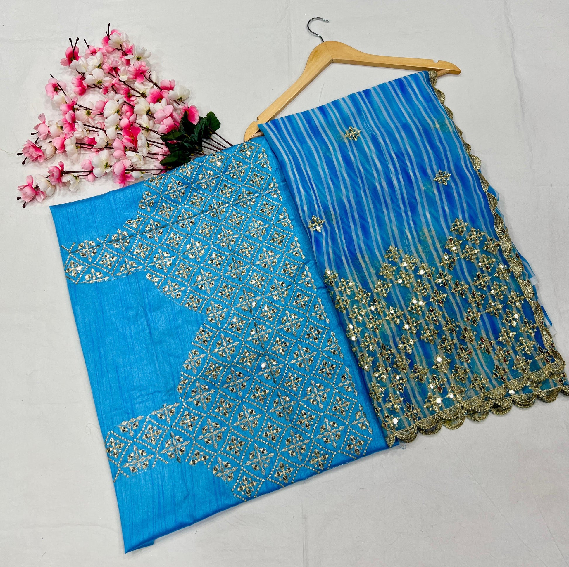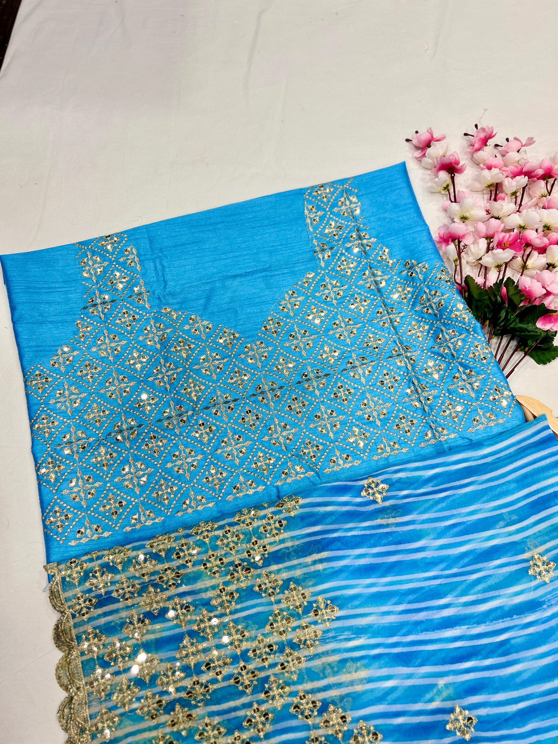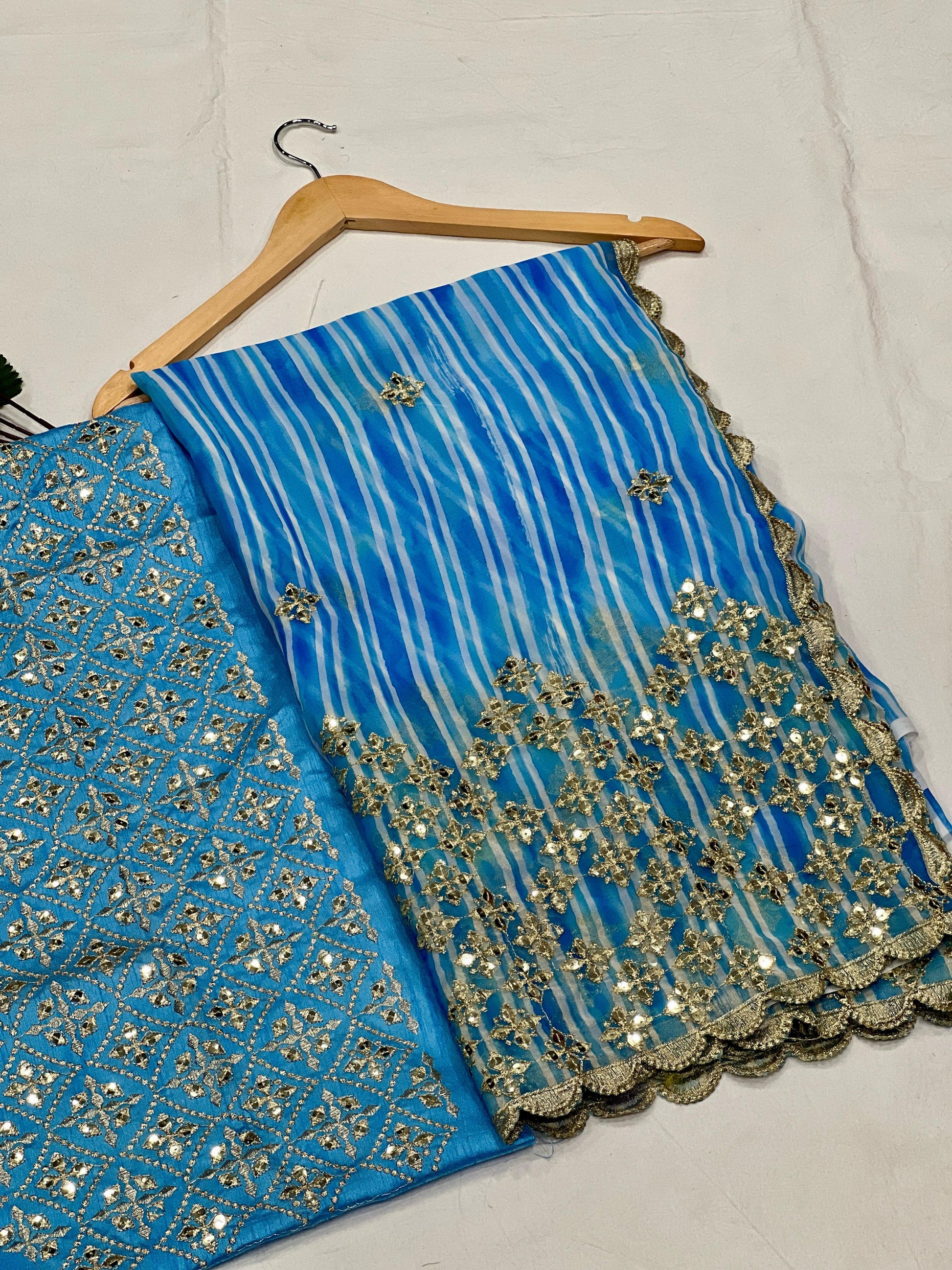 🏷️ Saree :- Heavy Fox Georgette With Beautiful Shibori Printed And Zari + 5.MM Sequence In Pallu_Skirt + Cut_Work Embroidery